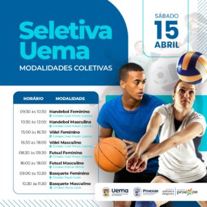 Essa seletiva visa recrutar alunos/atletas da Uema de todos os cursos que desejarem participar das nossas seleções esportivas Universitária que irão representar Uema em eventos regionais e nacionais como os Jogos Universitários Maranhense 2023 e futuramente para os Jogos Universitários Brasileiros. “A partir de agora, teremos treinos em dias alternados de todas as modalidades esportivas coletivas atendendo um anseio antigo dos nossos alunos que passarão a ter essa oportunidade em desenvolver suas práticas esportivas de forma regular além de representar a sua Universidade em eventos futuros’’, destacou Fabiano Furtado, coordenador de Cultura e Desporto da Universidade Estadual do Maranhão.