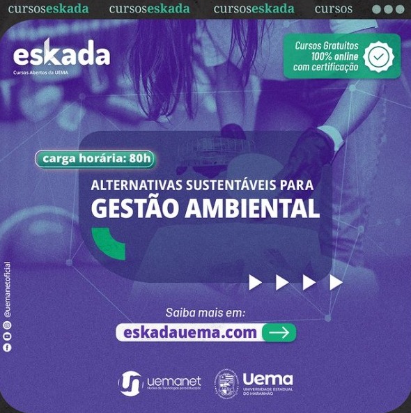 A plataforma de cursos abertos da Universidade Estadual do Maranhão (UEMA), Eskada, acaba de adicionar um novo curso ao seu catálogo, o curso de Alternativas Sustentáveis para Gestão Ambiental.