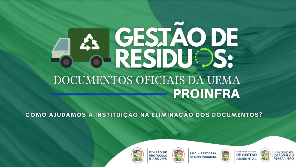 Por isso a Divisão de Protocolo e Arquivo (DPA) e a Superintendência de Gestão Ambiental (AGA), desenvolvem juntas uma campanha educativa, com o tema “Gestão de Resíduos: Documentos Oficiais da UEMA”. Com o objetivo de conscientizar o corpo administrativo da UEMA, sobre o descarte correto dos documentos da instituição. A data prevista para realização das visitas nas unidades administrativas, será divulgada antecipadamente via Comunicação Interna (C.I).
