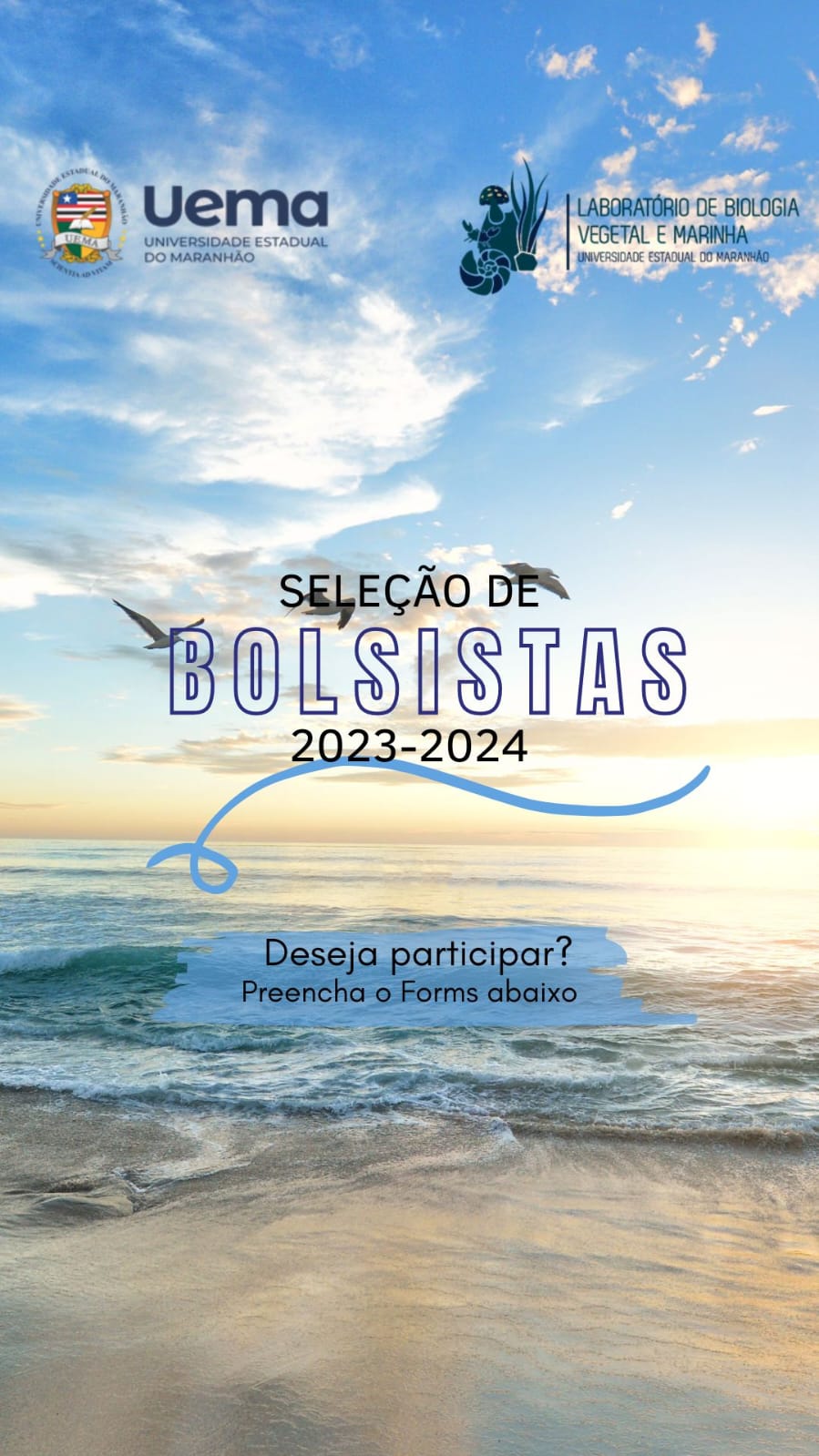 Atenção, estudante! A seleção de novos bolsistas e voluntários para trabalhar em ambientes marinhos de Paço do Lumiar só irá até esta terça-feira (1º). No momento, são quatro projetos de IC/PIBIC/PIBITI (Iniciação Científica) com bolsa e, em setembro, serão mais três bolsas de extensão.