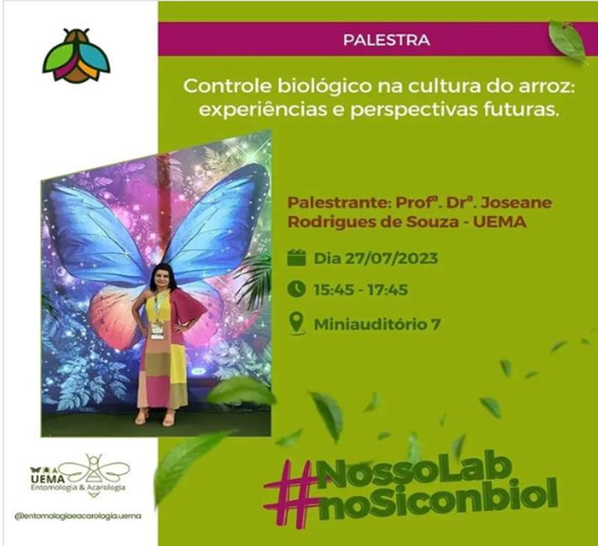 A Professora Joseane Rodrigues de Souza do Centro de Ciências Agrárias (CCA) da Universidade Estadual do Maranhão (Uema) é uma das palestrantes convidadas para o 17º Simpósio de Controle Biológico – Siconbiol que acontecerá entre os dias 23 e 27 de julho, em Juazeiro – BA e Petrolina – PE.
