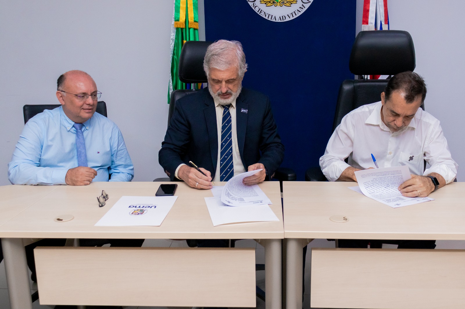 A Universidade Estadual do Maranhão (Uema), por meio do seu reitor Walter Canales, vice-reitor, Paulo Catunda, e diretor-executivo da Agência de Inovação e Empreendedorismo da Uema, a Marandu, professor Roberto Serra, assinaram na tarde desta quinta-feira (06), um protocolo de intenções para cursos e soluções afins ao programa nacional de educação empreendedora que entre si celebram o serviço de apoio às micro e pequenas empresas do Maranhão – SEBRAE/MA e Universidade Estadual do Maranhão (Uema).