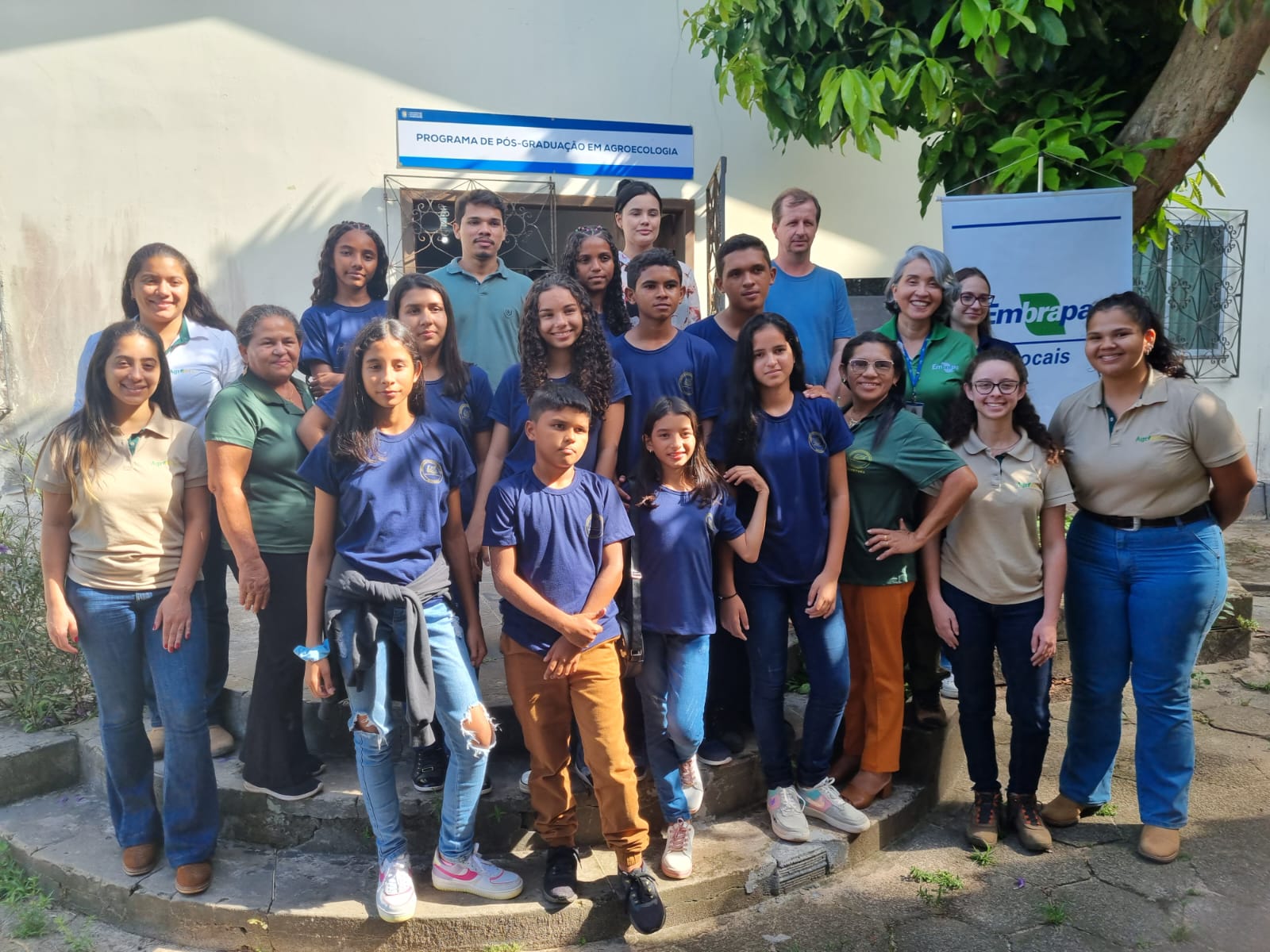 Reuniram-se no departamento de Agroecologia da Universidade Estadual do Maranhão, Campus Paulo IV a pesquisadora da Embrapa, Guilhermina Cayres, a estudante do mestrado Myrella Katlhen e seu orientador Heder Brahn junto a um grupo de 10 alunos do 6° ao 9° ano e gestores da Escola Municipal Cecílio Rodrigues Teixeira de tempo integral da Zona Rural, do povoado Angical em Anapurus que foram campeões do projeto de educação ambiental da Associação Brasileira das Indústrias de Óleos Vegetais (ABIOVE).
