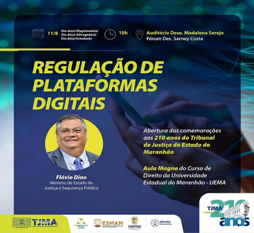 O evento contará com a participação do Ministro da Justiça e Segurança Flávio Dino que tratará sobre o tema: “Regulação de Plataformas Digitais”.