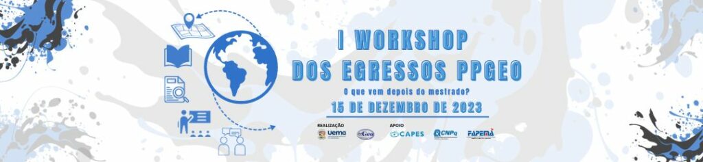 O I WORKSHOP DOS EGRESSOS PPGEO – 2023 é um evento sobre os egressos do Programa de Pós-graduação em Geografia, Natureza e Dinâmica do Espaço e receberá toda a comunidade acadêmica desde os egressos do programa aos discentes da pós graduação e da graduação da Geografia – UEMA. No workshop haverá mesas-redondas com a presença de profissionais experts de diferentes áreas de atuação dentro e fora do âmbito da Geografia.