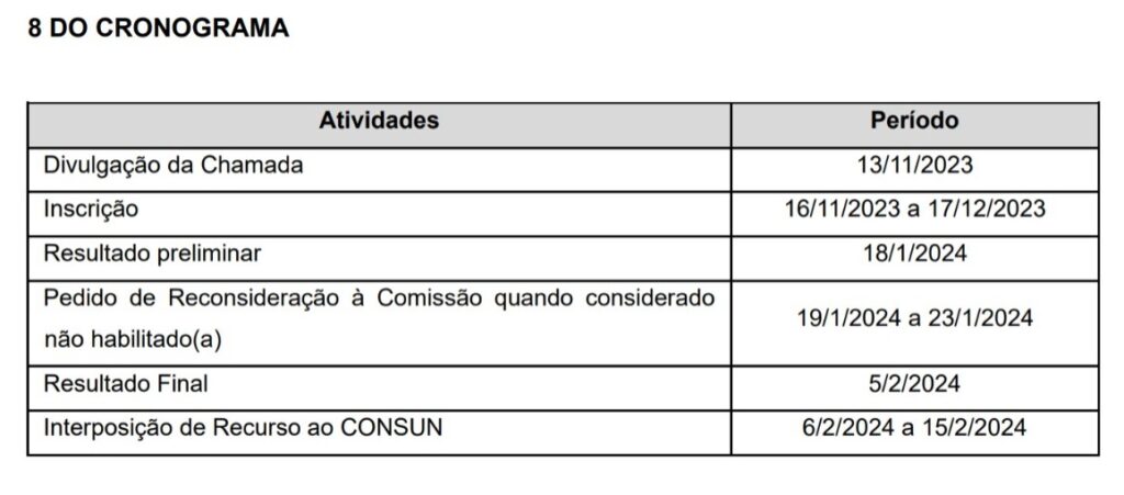 Veja abaixo as novas datas em relação ao cronograma do edital:
