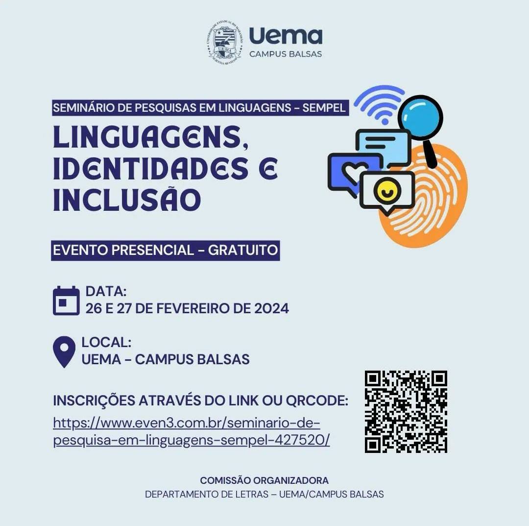 A Universidade Estadual do Maranhão (Uema), por meio do Campus Balsas, realizará o Seminário de Pesquisas em Linguagens (SEMPEL), com o tema “Linguagens, Identidades e Inclusão”.