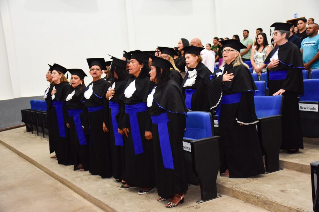 A solenidade foi um momento de muitas alegrias e de expressões de gratidão. A oradora da turma foi a concludente Eva Batista de Vasconcelos e a juramentista, a concludente Dianete Terezinha Dalloglio.