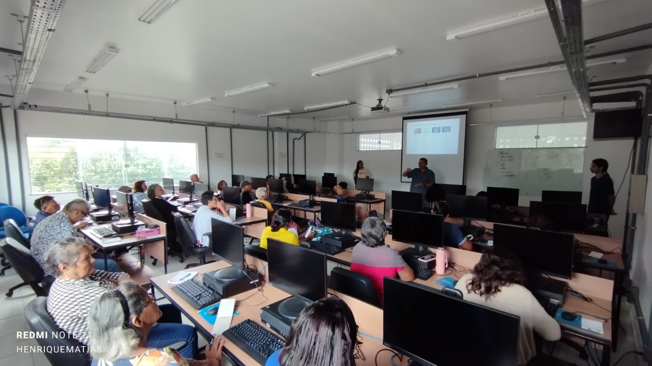 Os encontros do primeiro módulo duraram 20 dias, com aulas às terças e quintas, das 8h às 9h30, e envolveram a aprendizagem de habilidades básicas de informática, navegação na internet, uso de aplicativos e dispositivos eletrônicos, uso das redes sociais, email, além da compreensão dos benefícios e riscos associados à tecnologia.