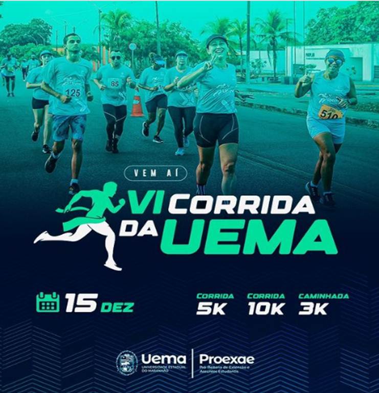 A Universidade Estadual do Maranhão (Uema), por meio da Pró-Reitoria de Extensão e Assuntos Estudantis (Proexae), acaba de anunciar a realização da 6ª edição da Corrida Uema, um evento que promove a saúde e integração entre a comunidade acadêmica e a sociedade em geral.