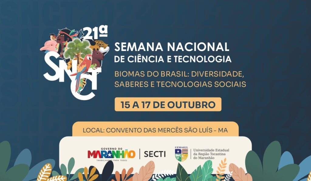 A Universidade Estadual do Maranhão (Uema) irá participar na 21ª Edição da Semana Nacional de Ciência e Tecnologia – SNCT, evento que acontecerá nos dias 15, 16 e 17 de outubro de 2024, no Convento das Mercês, localizado na Rua da Palma, 502 – Desterro, São Luís, MA, das 09h às 19h.