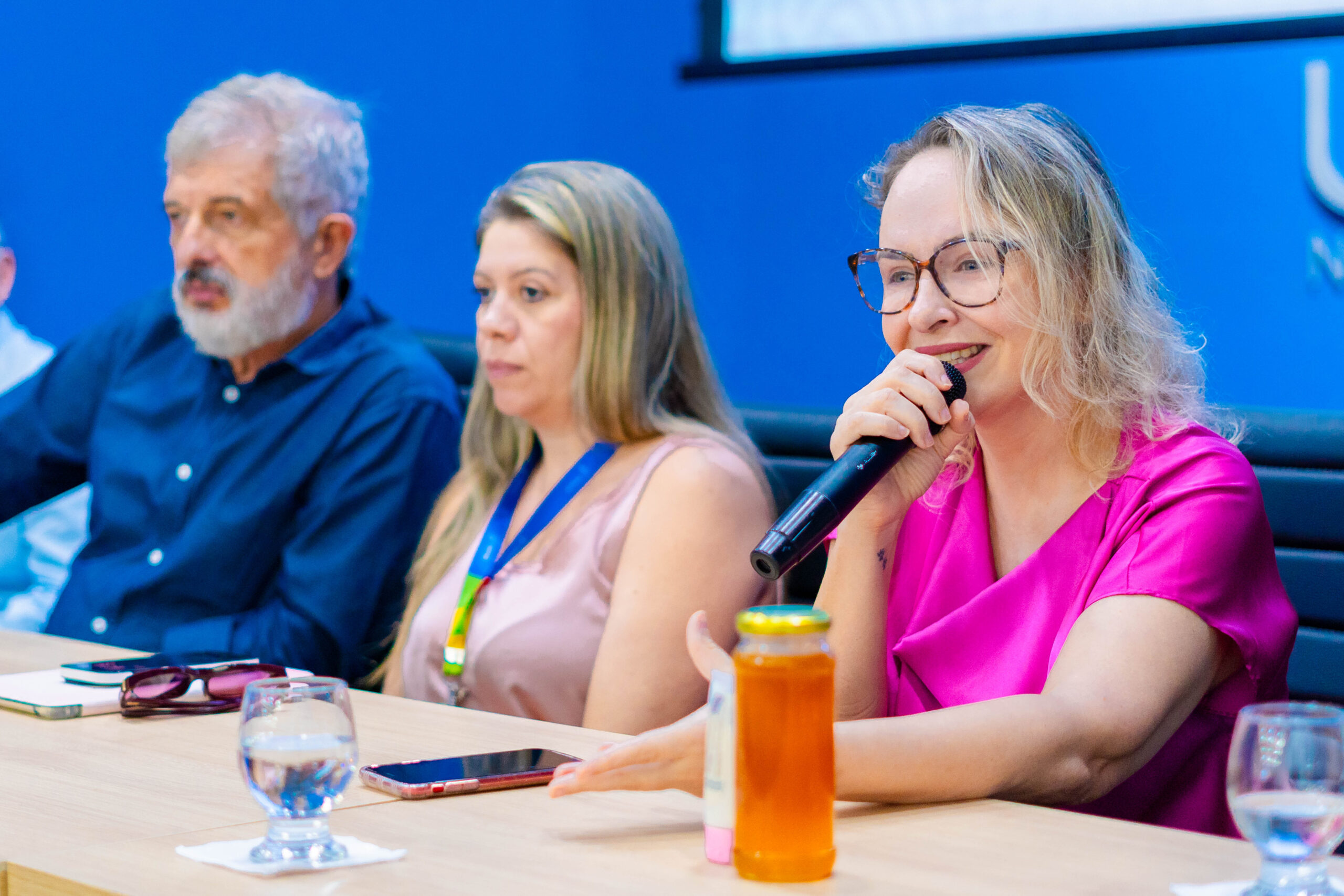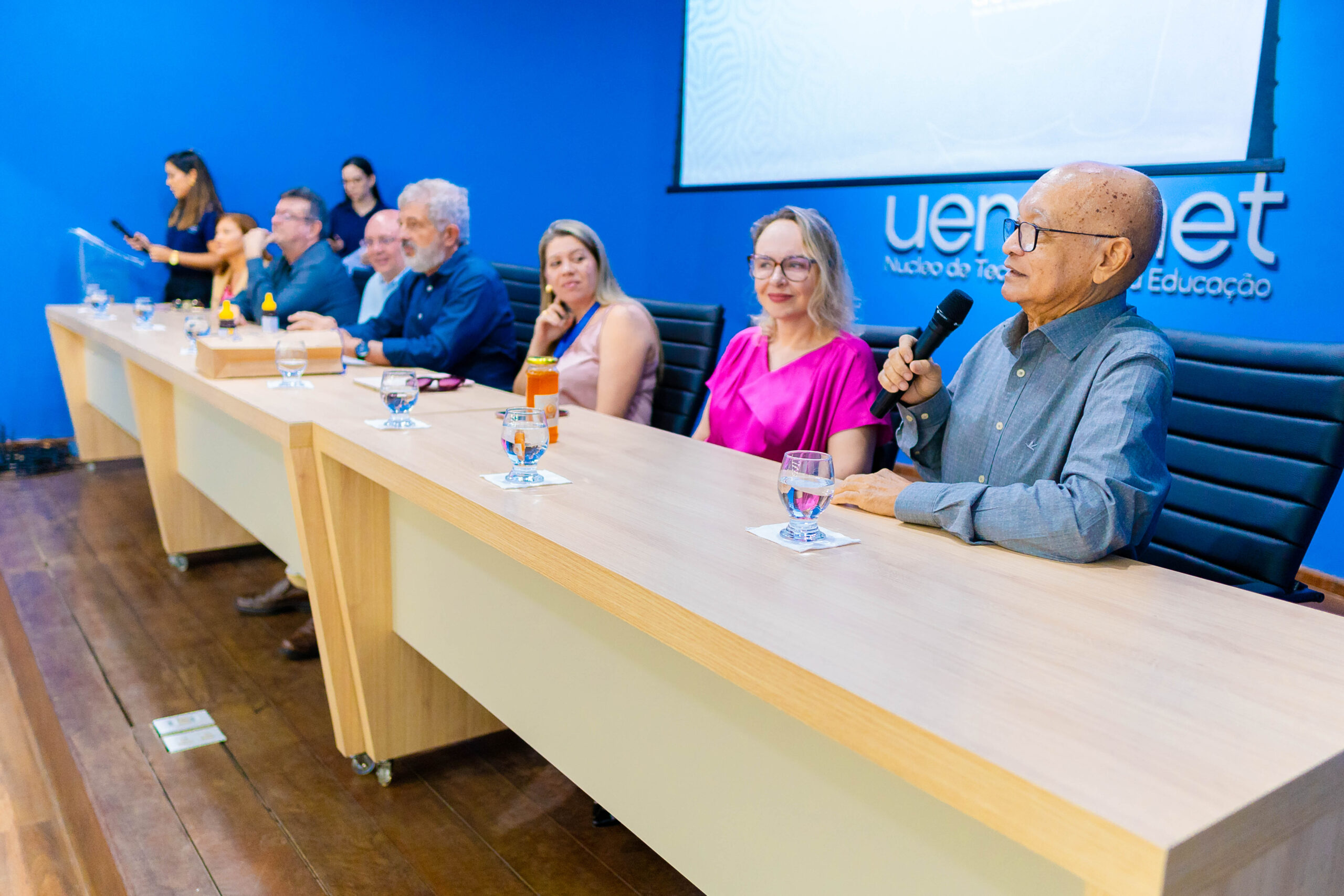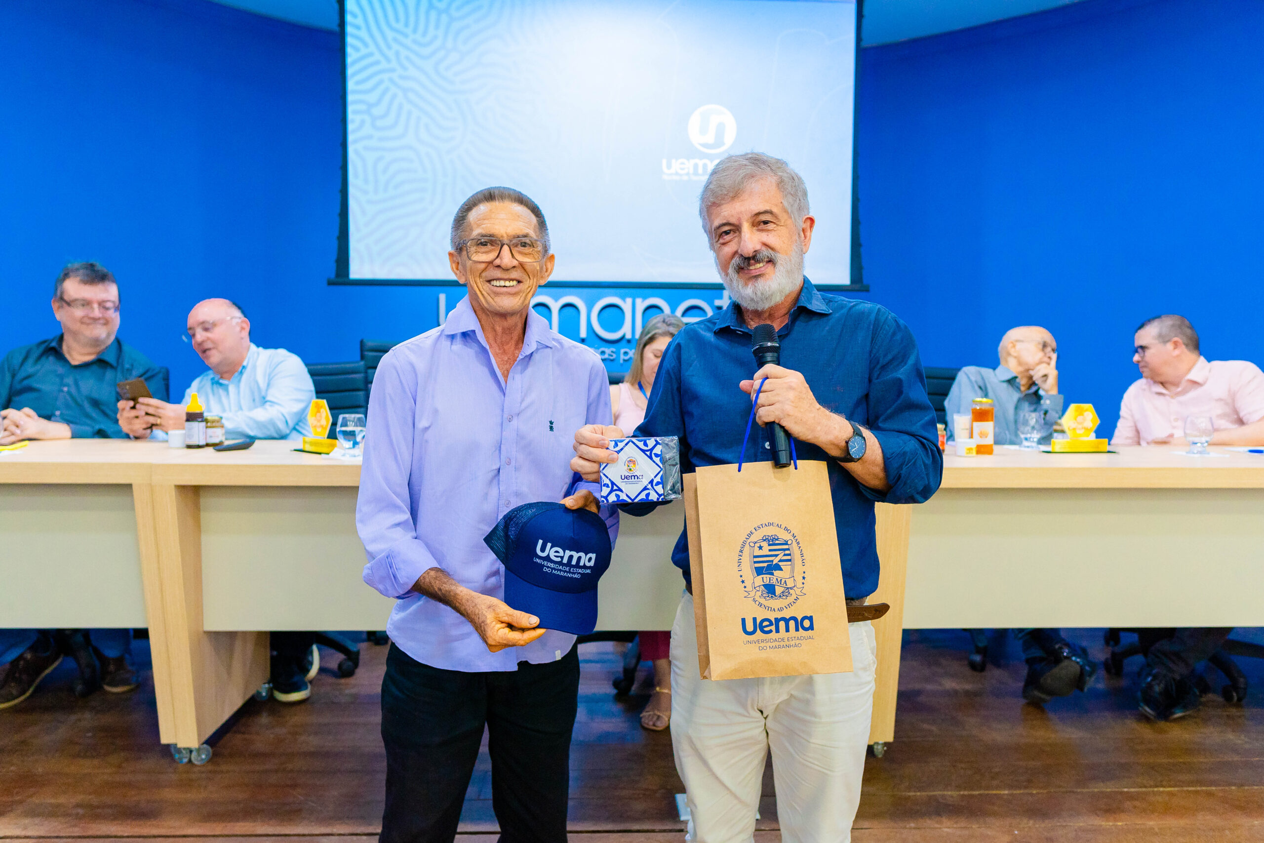 A mesa de autoridades do encontro contou, ainda, com a presença do vice-reitor, professor Paulo Catunda, do pró-reitor de Pesquisa e Pós-Graduação, professor Marcelo Cheche, da pró-reitora adjunta de Extensão e Assuntos Estudantis, professora Camila Magalhães Silva, do professor Ribamar Barros e do representante da Fapema, Cristiano Leonardo de Alan Kardec.