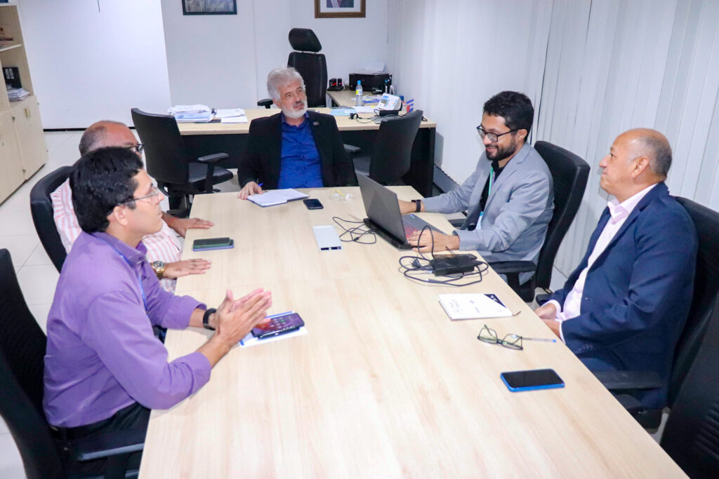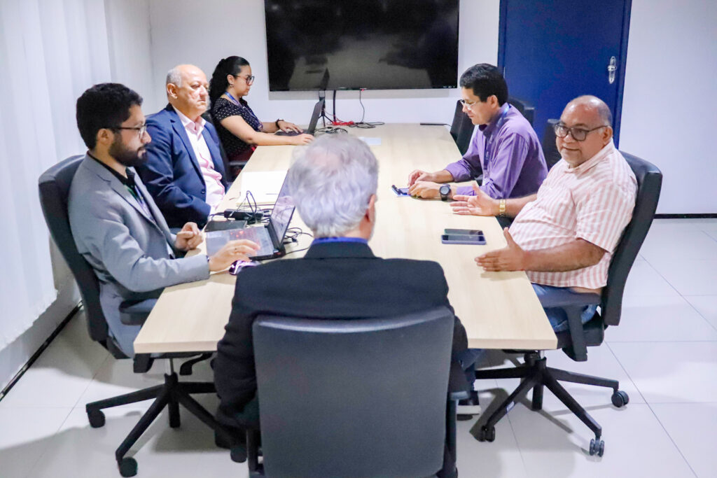 Com o objetivo de discutir parceria com a Universidade Estadual do Maranhão (Uema), o secretário adjunto da Secretaria Estadual de Trabalho e Economia Solidária (Setres), Ricardo Costa Gonçalves foi recebido nessa quarta-feira (2), pelo reitor Walter Canales, no prédio da Reitoria – Campus Paulo VI -, onde estavam também o diretor do Centro de Ciências Tecnológicas (CCT), professor Fernando Lima, o diretor do Curso de Engenharia Mecânica, professor Carlos Ronyhelton, o chefe de gabinete da Reitoria, professor José Sampaio Júnior, e a assessora da Reitoria, Flávia Hissae Kusaba.