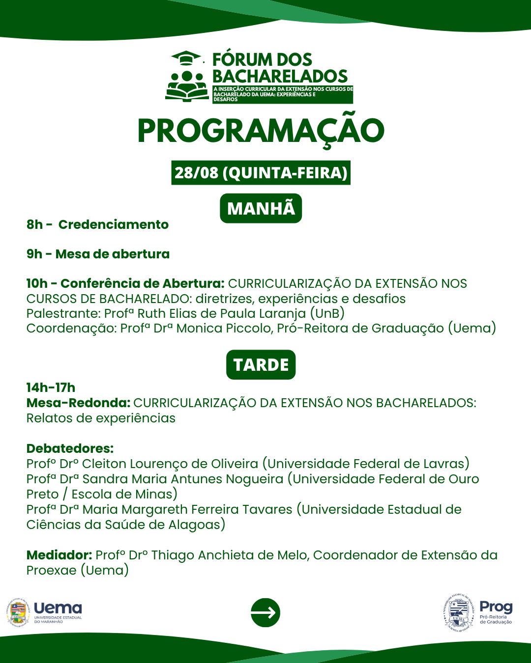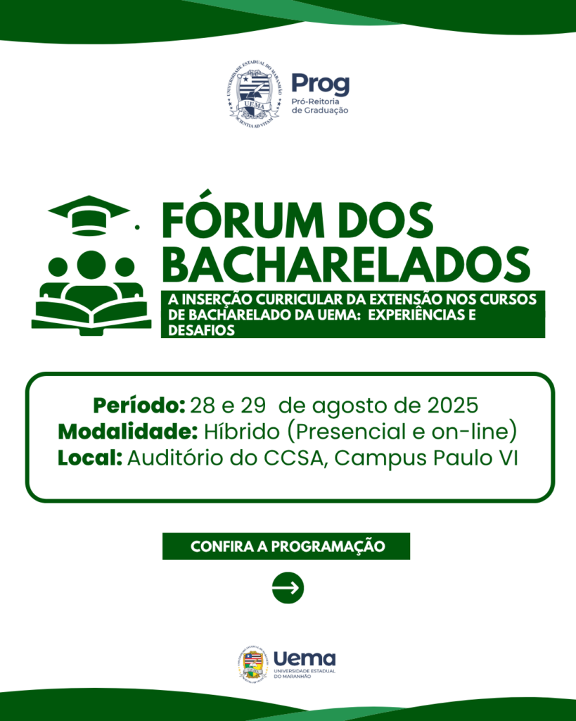 A Universidade Estadual do Maranhão (Uema), por meio da Pró-reitoria de Graduação (Prog), realizará nos dias 28 e 29 de agosto, o I Fórum dos Bacharelados.