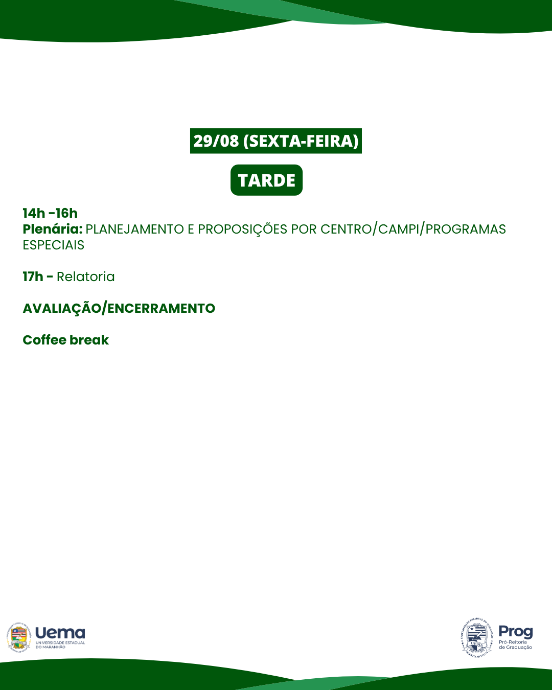 A programação do evento contará com palestras e mesas-redondas, além de um espaço dedicado ao planejamento e às proposições feitas por centros, campi e programas especiais.