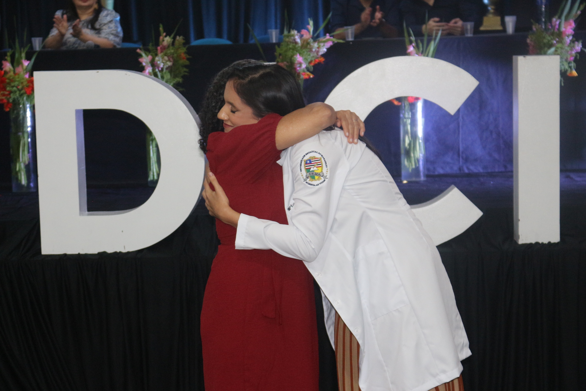 Em seguida falou a Chefe do Departamento de Ciências da Saúde, professora mestre Irene Sousa da Silva: “Esses momentos não voltam, é preciso comemorar. O jaleco é simbólico, tem um peso muito grande de responsabilidade, carinho e amor. O que faz o curso de Medicina ser belo é a ação, é como a gente faz ele. Vocês estão na fase de se preencherem, se enriquecerem de conhecimento para exercerem essa profissão. Vocês não vão aprender só Medicina, mas muita coisa da vida, fazer coisas que nunca pensaram. Vocês vão cuidar de pessoas e a primeira pessoa que vocês precisam cuidar são vocês. Terão uma carga de trabalho muito grande e precisam estar bem para aprender. Espero reencontrá-los em outro marco, quando deixarão de ser acadêmicos e serão médicos. Fico feliz em estar com vocês”, destacou