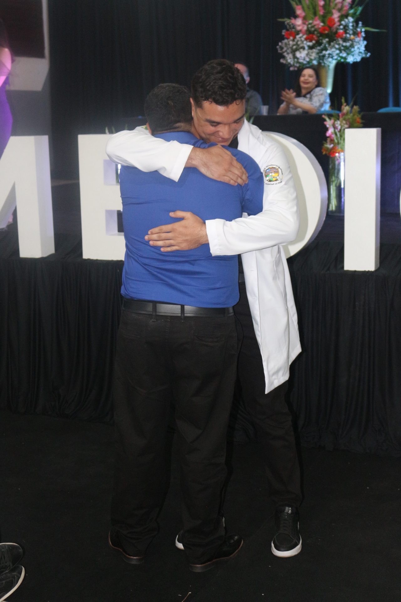 O representante do Centro Acadêmico Aluízio Bittencourt de Albuquerque (CAMABA), Thiago Abreu, também foi convidado a se manifestar: “Hoje é um dia que vale a pena. Vocês precisarão sonhar muito aqui, não percam essa capacidade. Nos momentos difíceis, quando vocês não puderem dar conta, peça ajuda, vocês não estão sós. Terão que vencer a si mesmos, deixar o orgulho de lado, aceitar opiniões diferentes, lidar com a cobrança e a pressão que esse curso exige. Meu papel no CAMABA é defender os nossos interesses como estudantes. Sejam participativos, interajam, se interessem, essa instituição é nossa, aprendam a defendê-la. Guardem a Medicina no coração, assim como ela está bordada em seus peitos”, incentivou.