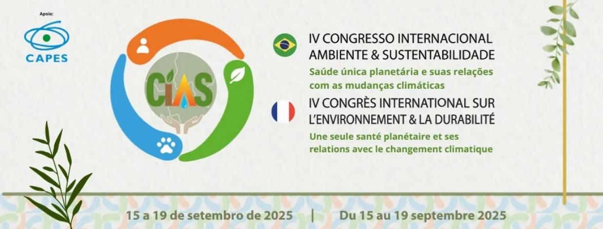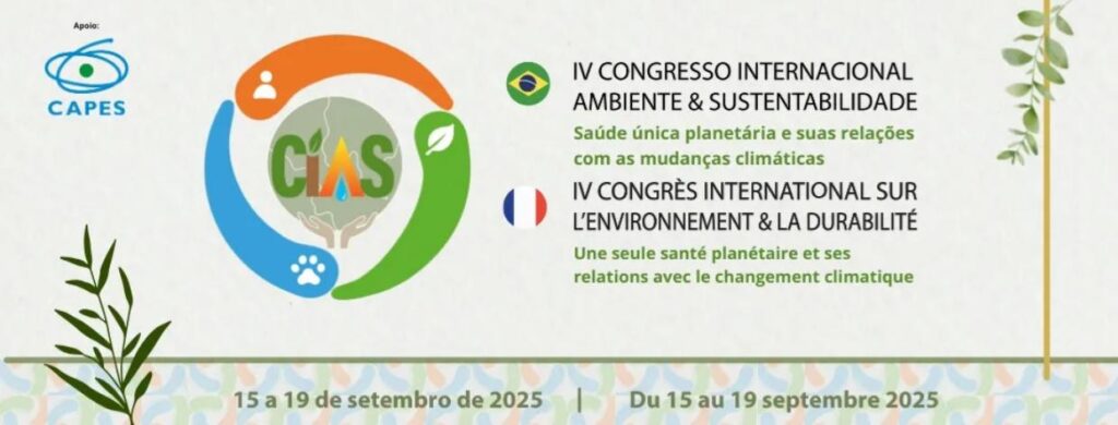 De 15 a 19 de setembro de 2025, será realizado o IV Congresso Internacional Ambiente & Sustentabilidade (CIAS 2025), com o tema central “Saúde Única Planetária e suas relações com as mudanças climáticas”. O evento acontecerá em formato híbrido, com atividades presenciais e transmissão online, reunindo pesquisadores, estudantes, gestores públicos e sociedade civil em um espaço de diálogo sobre as principais problemáticas e soluções ambientais.
