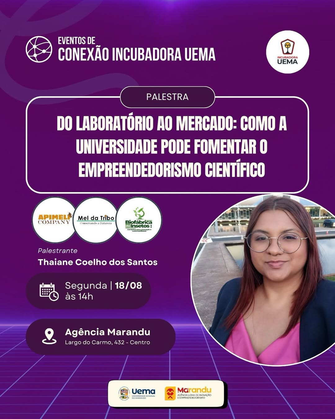 A Universidade Estadual do Maranhão (Uema), por meio da Agência de Inovação e Empreendedorismo (Agência Marandu), realizará na segunda-feira (18), um encontro com o tema “Do laboratório ao mercado: como a universidade pode fomentar o empreendedorismo científico”.
