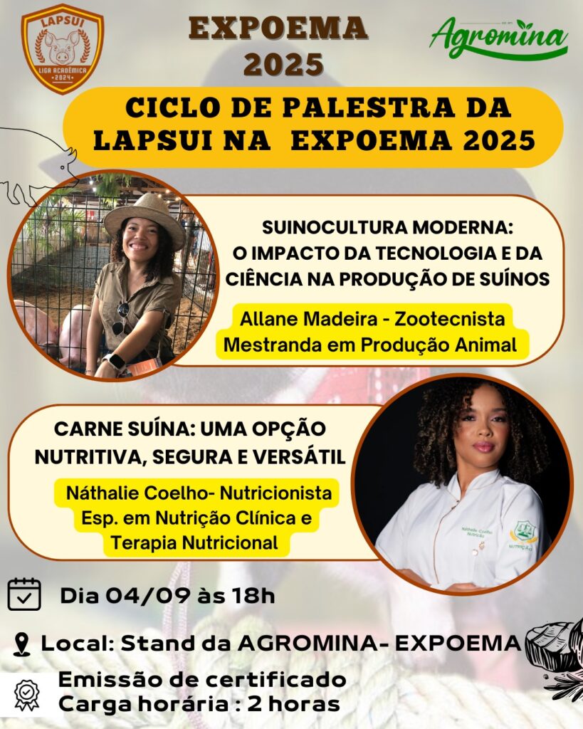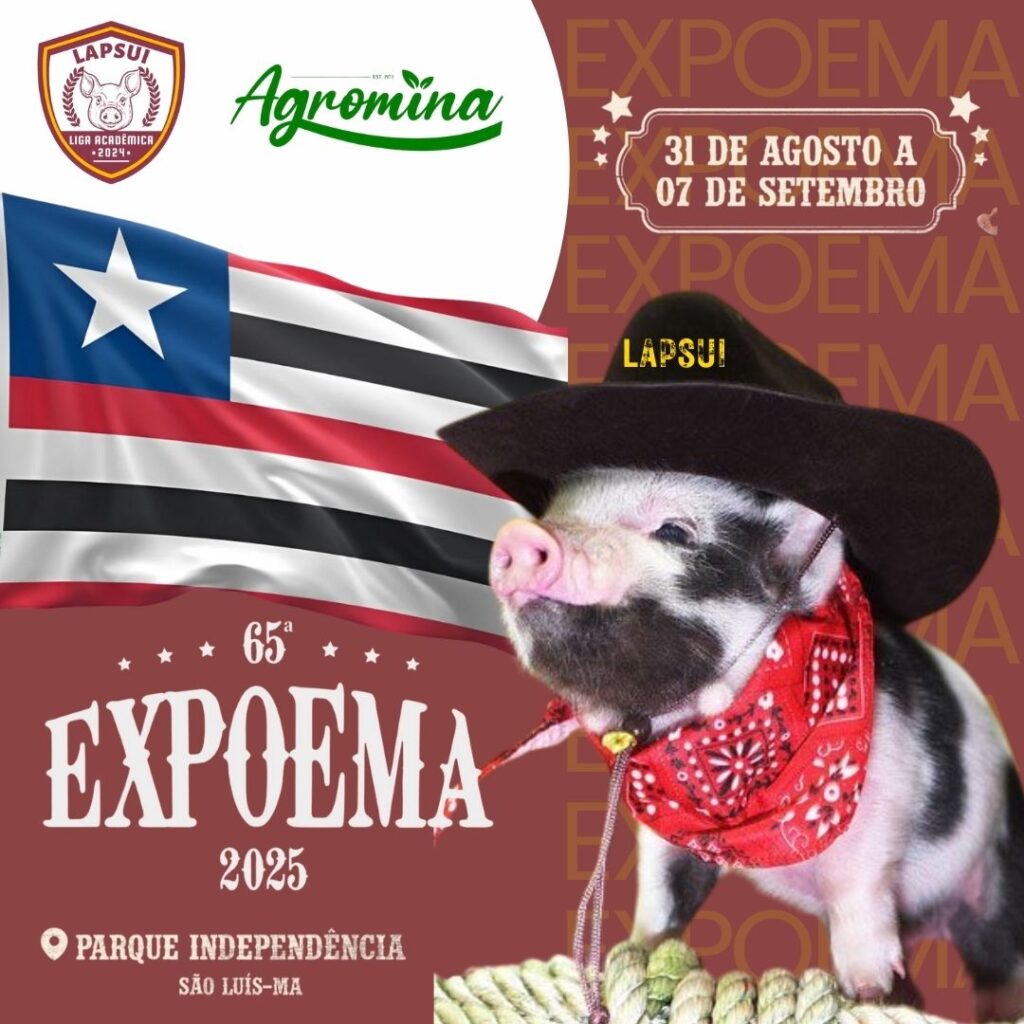 A Universidade Estadual do Maranhão (Uema), por meio da Liga Acadêmica de Suinocultura (LAPSUI), em parceria com o Grupo Agromina, estará presente na 65ª Exposição Agropecuária do Maranhão (Expoema), realizada de 1º a 7 de setembro, no Parque da Independência, com atividades educativas sobre carne suína.