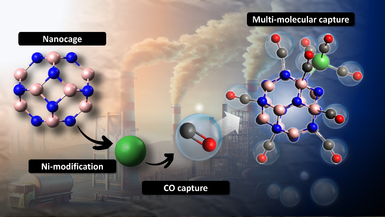 O artigo, intitulado “Estudo teórico de nanogaiolas de B12N12 modificadas com Ni: entendimento acerca do potencial para a captura de CO”, investigou como o monóxido de carbono interage com nanogaiolas feitas de boro e nitrogênio (B12N12), em sua forma pura e também quando modificadas com átomos de níquel (Ni).