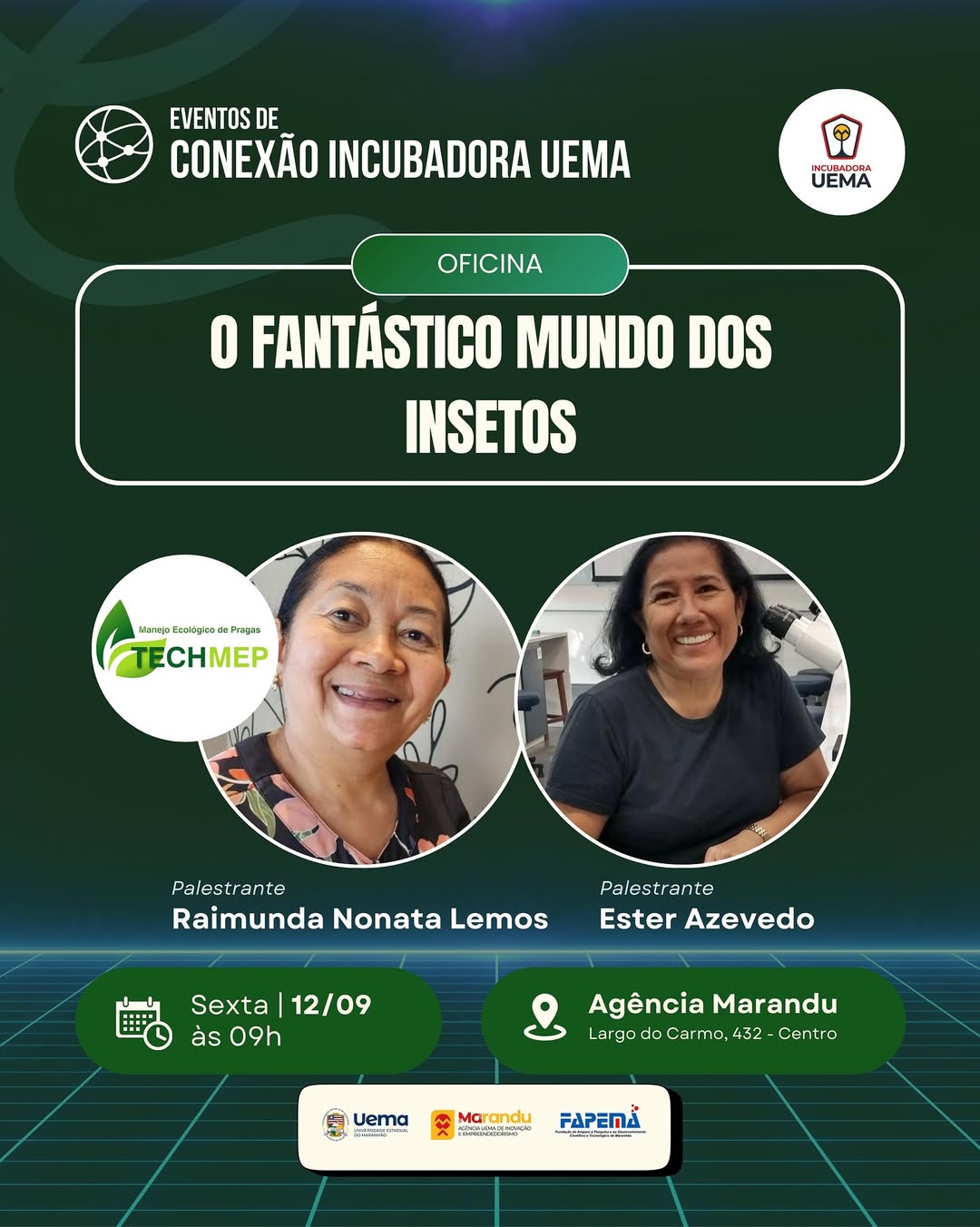 A Universidade Estadual do Maranhão (Uema), por meio da Agência de Inovação e Empreendedorismo (Agência Marandu), realizará nesta sexta-feira (12), a oficina “O Fantástico Mundo dos Insetos”.