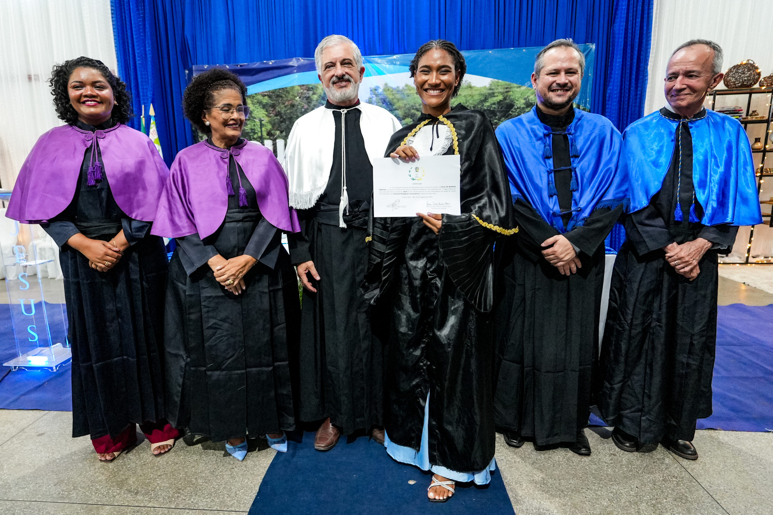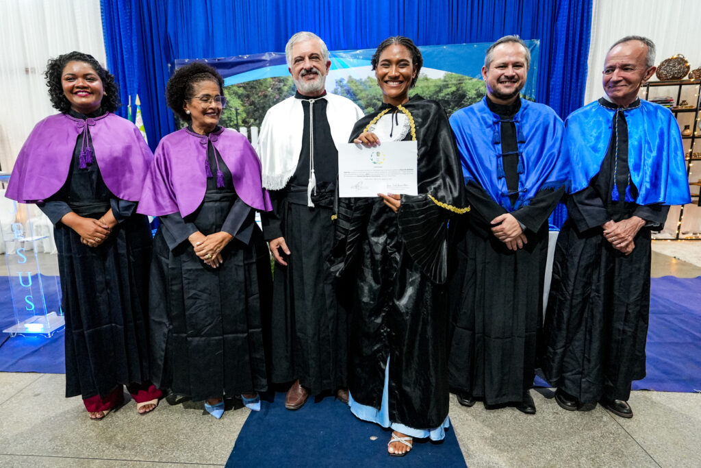Durante a solenidade, a Uema concedeu o título de Mérito Acadêmico a estudantes que se destacaram pelo alto rendimento durante a graduação, reforçando o compromisso da instituição com a excelência no ensino superior: