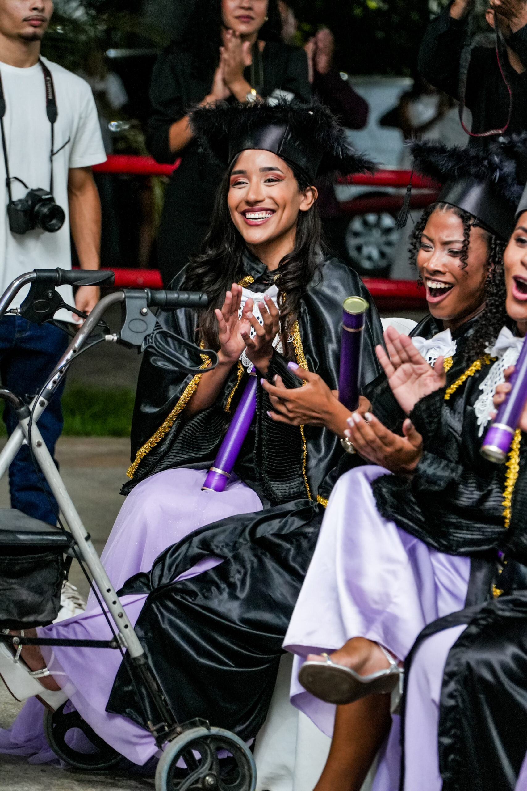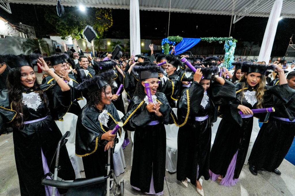 Em nome dos paraninfos da turma, a professora Ana Rosária Soares da Silva, do curso de Letras, deixou uma mensagem de incentivo e inspiração aos formandos. Em sua fala, destacou a importância de acreditar no próprio potencial e de seguir sempre em frente: “Nós temos que seguir em frente e olhar para o futuro. Cada um de vocês vai escrever o próprio livro, e estão com o poder de construir a própria história. Voe, suba o mais alto degrau da fama, a caneta de vocês tem poder. Aproveitem, busquem cada vez mais e não parem por aqui, pois este é apenas o início.”