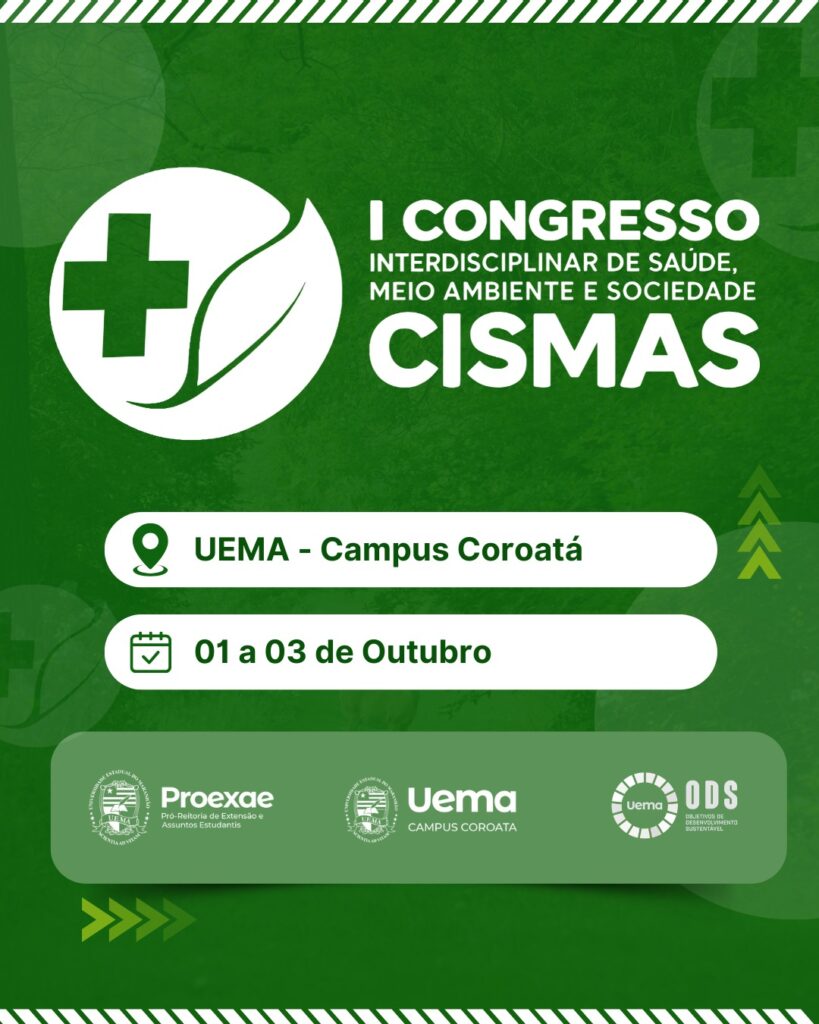 A Universidade Estadual do Maranhão (Uema), por meio do Campus Coroatá, realizará entre os dias 1º e 3 de outubro o I Congresso Interdisciplinar de Saúde, Meio Ambiente e Sociedade (CISMAS) com o tema “Interdisciplinaridade: Saúde, Ambiente e Sociedade em Busca de Equilíbrio”.