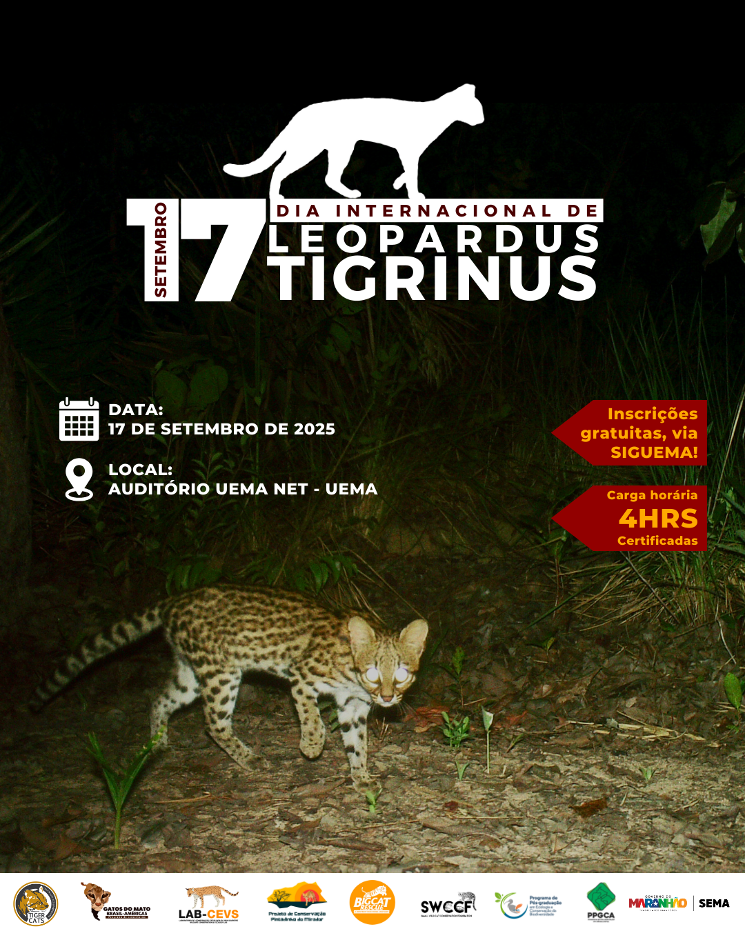 A Universidade Estadual do Maranhão (Uema), por meio do Programa de Pós-Graduação em Ecologia e Conservação da Biodiversidade (PPGECB), realizará um ciclo de palestras sobre o projeto de conservação do Gato Pintadinho (Leopardus tigrinus), reconhecido pela Secretaria de Estado do Meio Ambiente e Recursos Naturais (SEMA) como o símbolo da conservação do Estado do Maranhão.
