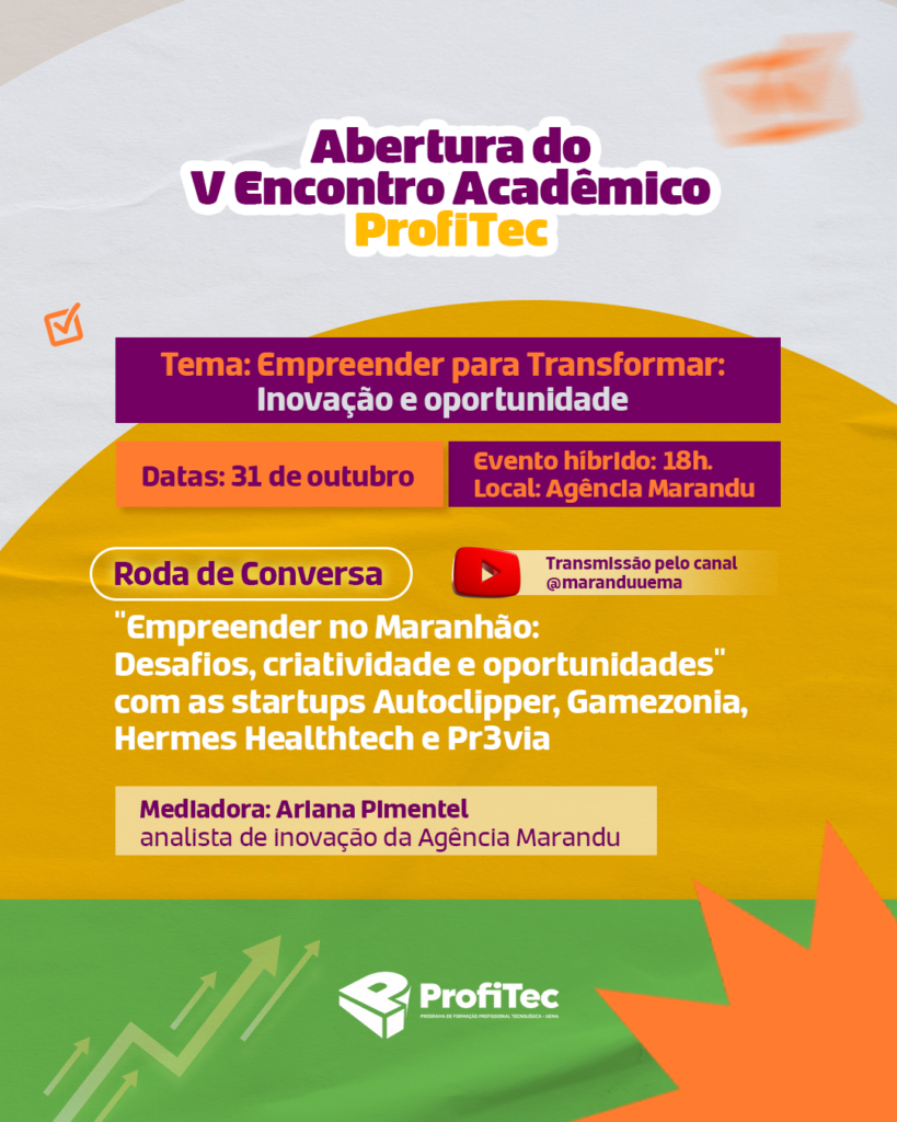 A Universidade Estadual do Maranhão (UEMA) realiza, nesta sexta-feira (31), a abertura oficial do V Encontro Acadêmico ProfiTec, evento promovido por meio do Programa de Formação Profissional Tecnológica (ProfiTec).