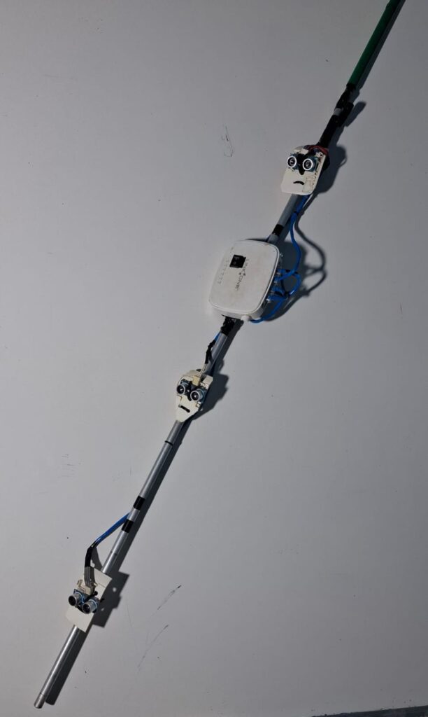 “Essa bengala possui sensores que detectam o obstáculo e atuadores que vibram e emitem som de alarme quando o usuário se aproxima dele. Ela foi pensada tanto para pessoas cegas quanto para aquelas com deficiência auditiva associada, emitindo alertas diferentes conforme a distância do objeto. Trata-se de uma solução simples, acessível e altamente funcional”, explicou o professor José Pinheiro.