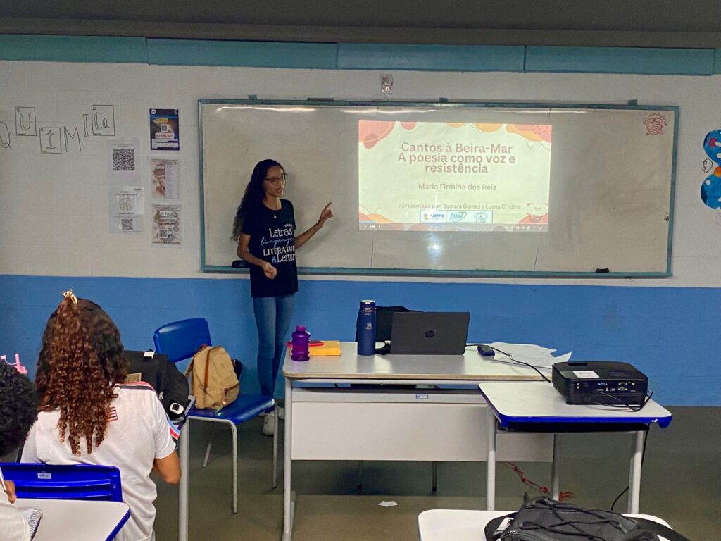 Também no IEMA Jardim América, a bolsista Samara Cristina Gomes Ferreira, sob a supervisão de Laércio da Silva Campos, desenvolve a proposta “A recepção de “Cantos à beira-mar”, de Maria Firmina dos Reis: a poesia como expressão de identidade e resistência cultural no ensino médio”, que visa trabalhar a poesia como instrumento de afirmação cultural e reflexão sobre identidade.