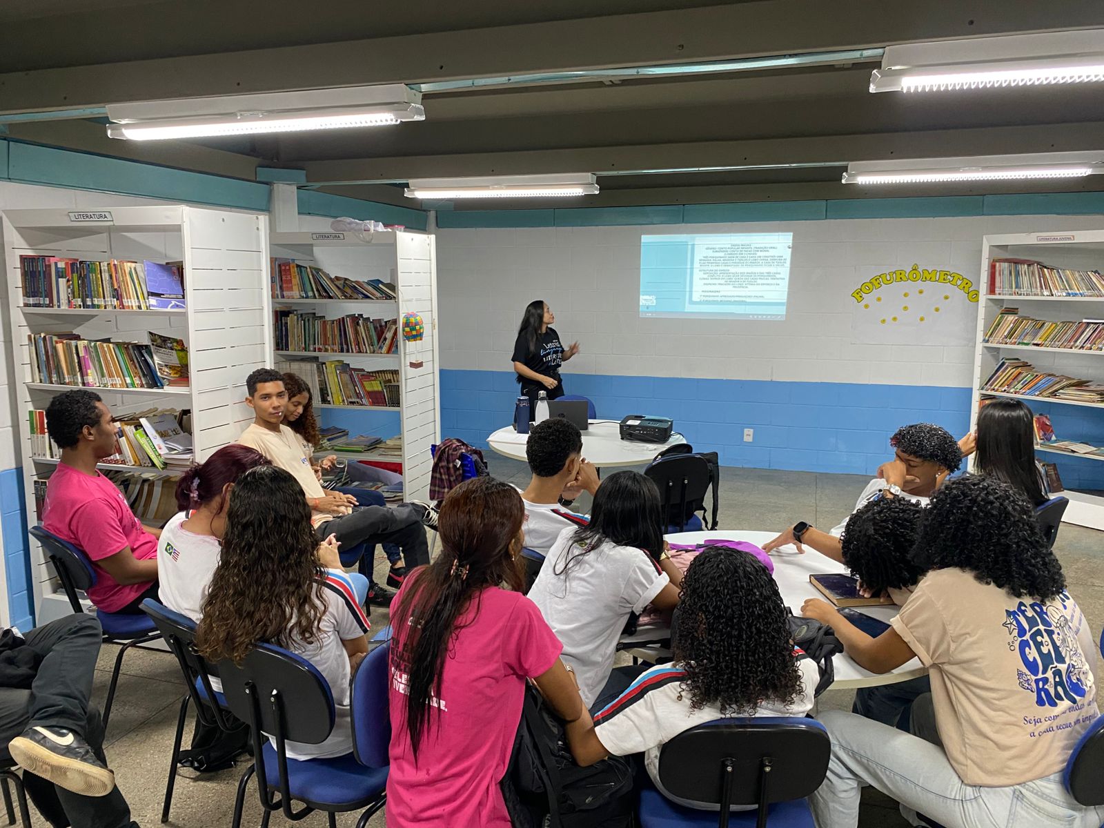 No Centro Educa Mais Padre José Bráulio, as bolsistas Ana Clara Braga C. Fonseca, Francilene Pereira Santos, Luana Cristina A. Martins e Thanielle Pereira Soares, sob a supervisão da professora Eva Vilaní de Macêdo, conduzem o projeto “Cantos à beira-mar”, de Maria Firmina dos Reis: recepção literária e o despertar da consciência leitora, que propõe uma imersão na obra da autora maranhense como forma de estimular o senso crítico e a valorização da literatura afro-brasileira.