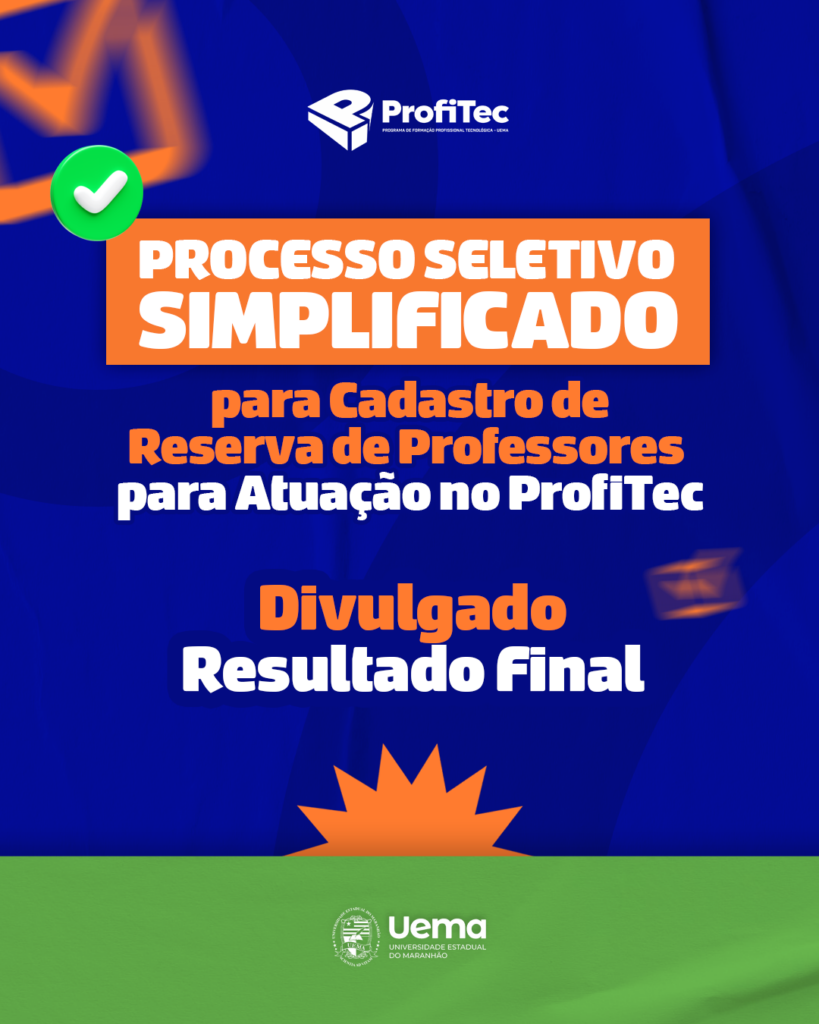 A Universidade Estadual do Maranhão (Uema) divulgou hoje (23) o resultado final do Processo Seletivo Simplificado destinado à formação de cadastro de reserva de professor formador para os cursos do Programa de Formação Profissional Tecnológica (ProfiTec).