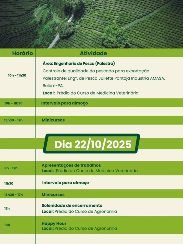 O evento é voltado para estudantes, professores, pesquisadores, técnicos e produtores rurais, para debater soluções alinhadas aos Objetivos de Desenvolvimento Sustentável, à Agenda 2030 e aos compromissos assumidos pelo Brasil na COP 30.