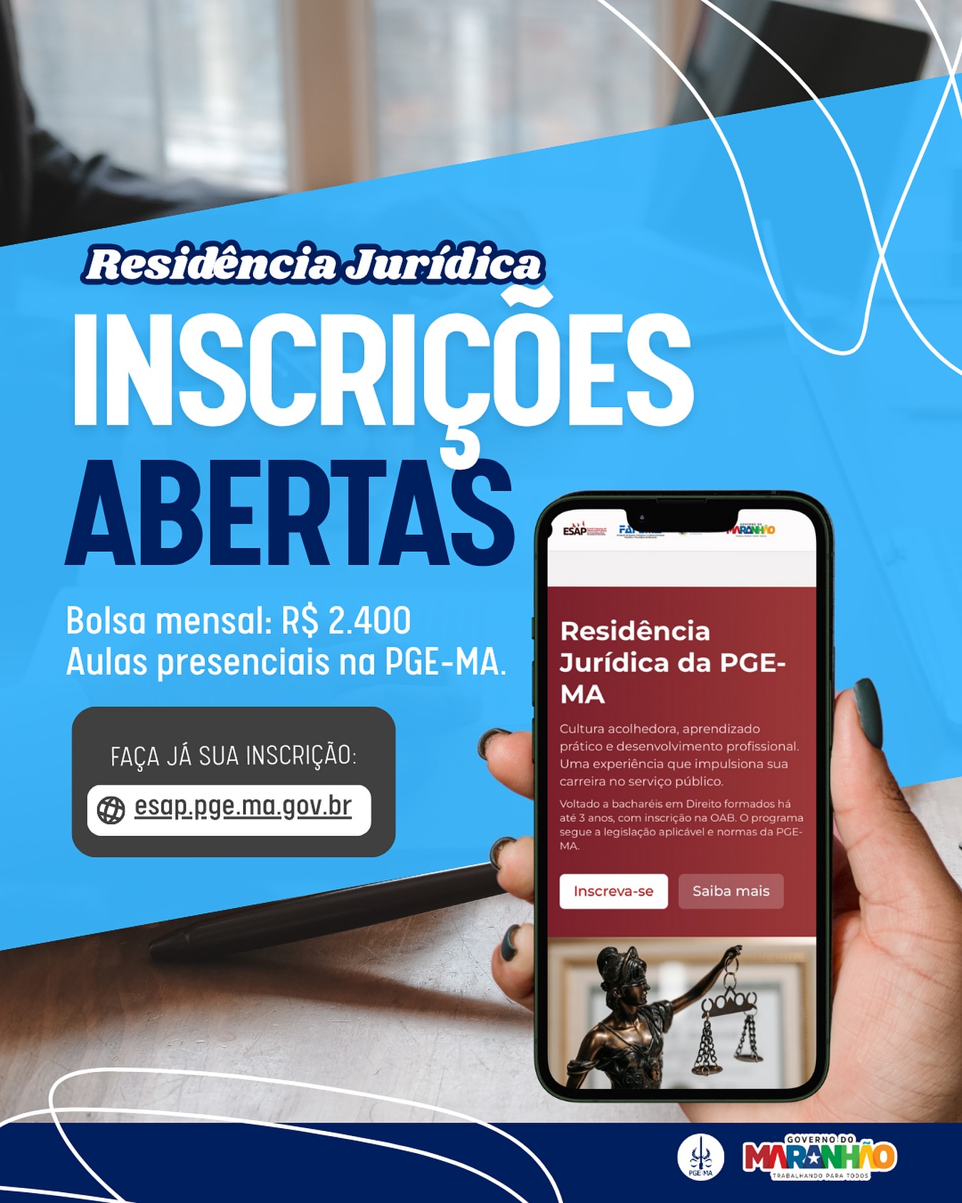 Acesse o edital completo no link https://esap.pge.ma.gov.br/