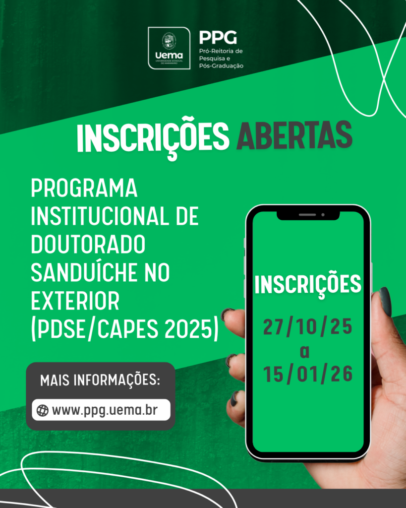 A Pró-Reitoria de Pesquisa e Pós-Graduação da Universidade Estadual do Maranhão anuncia a abertura do processo seletivo para a Bolsa de Doutorado Sanduíche no Exterior, no âmbito do Edital nº 17/2025 da CAPES. O programa visa oferecer aos estudantes de doutorado oportunidades de aprimoramento acadêmico e científico em instituições internacionais de excelência.