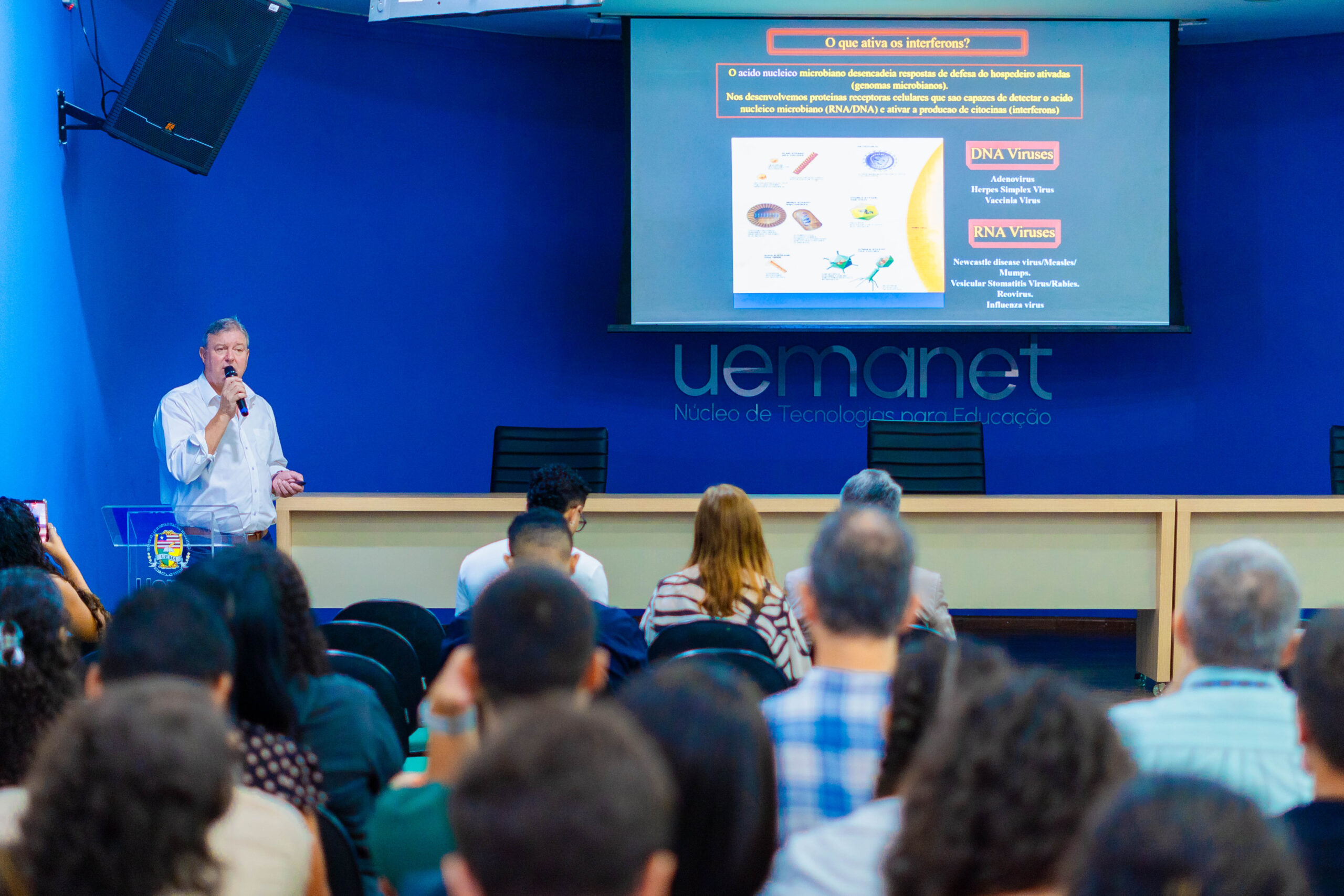 A Universidade Estadual do Maranhão (Uema), por meio do Centro de Ciências da Saúde (CCS), em parceria com a Academia Maranhense de Ciências, realizou na manhã desta quarta-feira (1º), no auditório do Uemanet, a palestra do cientista internacionalmente reconhecido Dr. Glen Norman Barber, com o tema “Innate Immune STING Signaling, Infectious Disease and Cancer”.