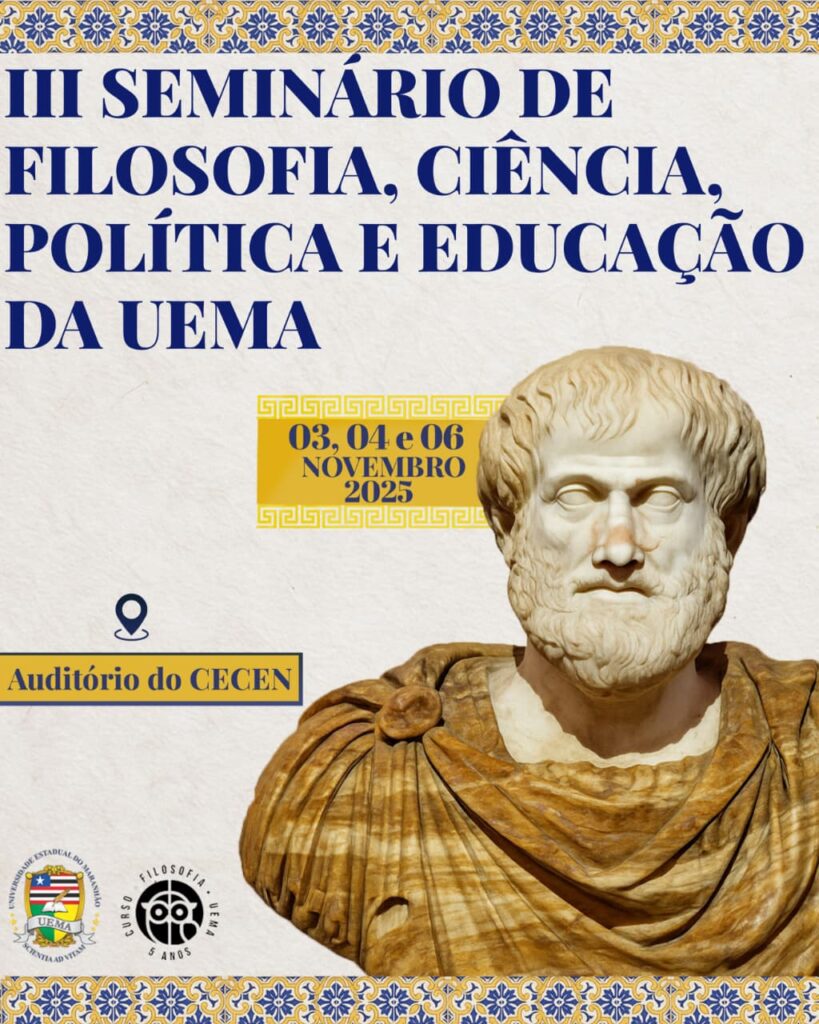 A Universidade Estadual do Maranhão (Uema) promoverá, de 3 a 6 de novembro de 2025, o III Seminário de Filosofia, Ciência, Política e Educação, no auditório do Centro de Educação, Ciências Exatas e Naturais (Cecen), em São Luís. O evento dá continuidade ao sucesso das duas edições anteriores, demonstrando o compromisso da instituição com a produção e a disseminação do conhecimento filosófico e científico no contexto contemporâneo.