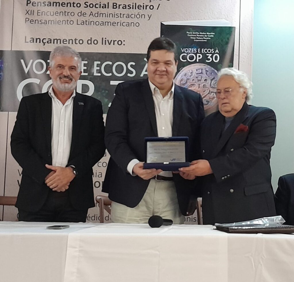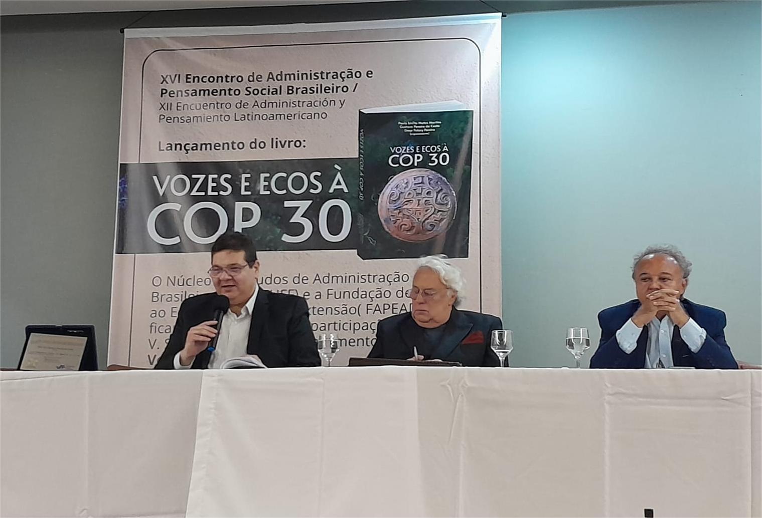 Aconteceu na noite da última quarta-feira, 19, no auditório da Escola de Arquitetura e Urbanismo da Universidade Estadual do Maranhão (Uema) – Centro Histórico -, o XVI Encontro de Administração e Pensamento Social Brasileiro, onde foi lançado o livro “Vozes e Ecos à COP30”, com publicação de artigos de professores pesquisadores da Uema, de universidades de outros estados e equatorianas.