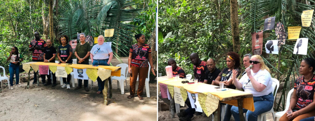 A professora Milena participou ainda de um momento de escuta com lideranças quilombolas e membros do Conselho das Comunidades Quilombolas de Viana, debatendo demandas locais, políticas educacionais e caminhos de fortalecimento da formação quilombola.