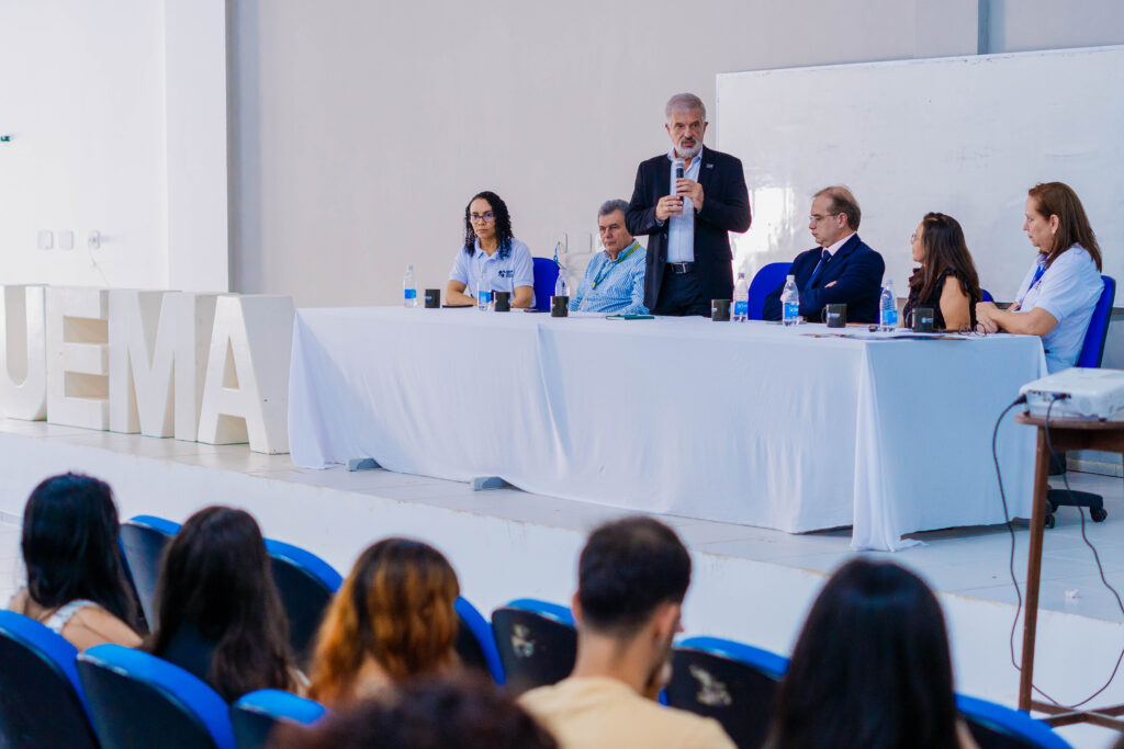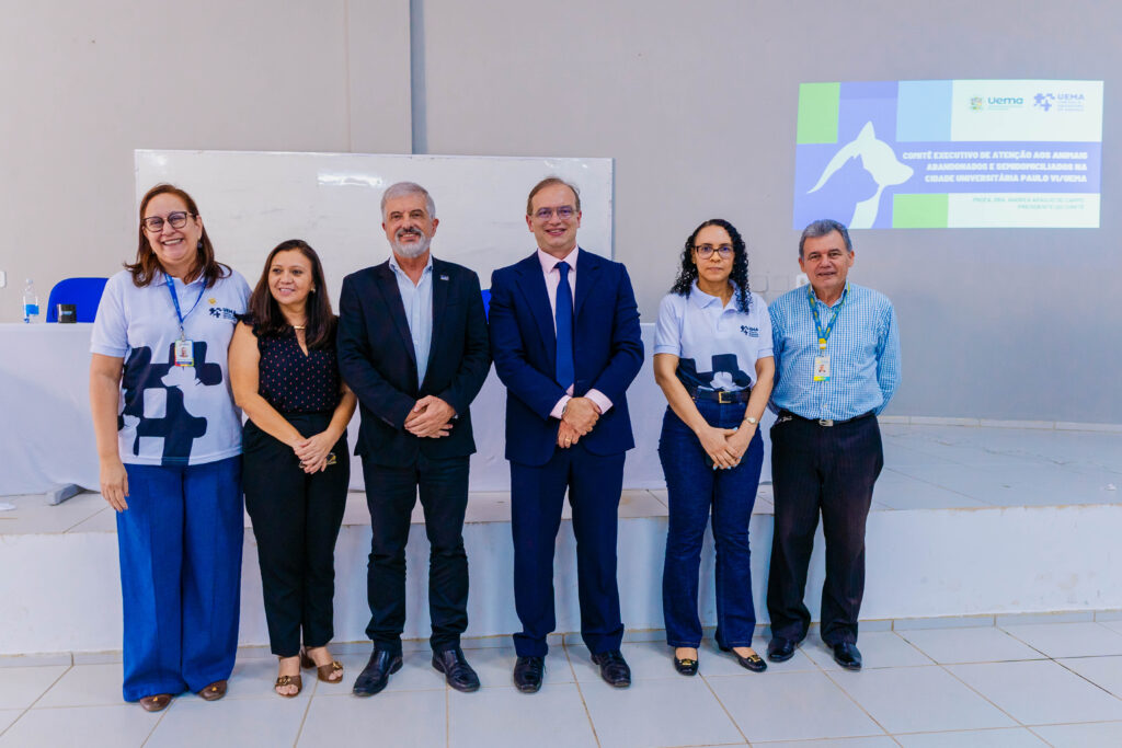 Compuseram a mesa de abertura o reitor da Uema, Walter Canales; o promotor de Justiça do Meio Ambiente do Maranhão, Claudio Rebêlo Alencar; a coordenadora da Unidade de Vigilância de Zoonoses de São Luís, Regina Célia Froes; o diretor do hospital veterinário municipal, Arnaldo Muniz Garcia; a diretora do HVU, Solange de Araújo Melo; e a presidente do Comitê Executivo de Atenção aos Animais Abandonados e Semidomiciliados do Campus Paulo VI, Andrea Araujo do Carmo.