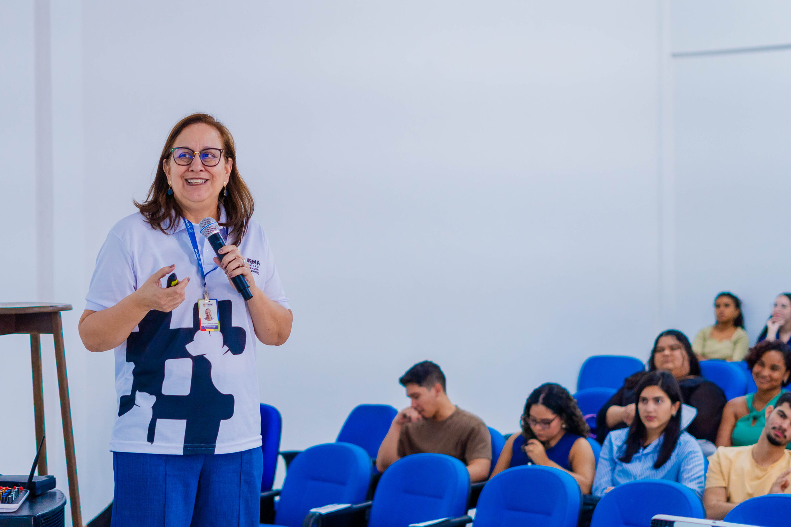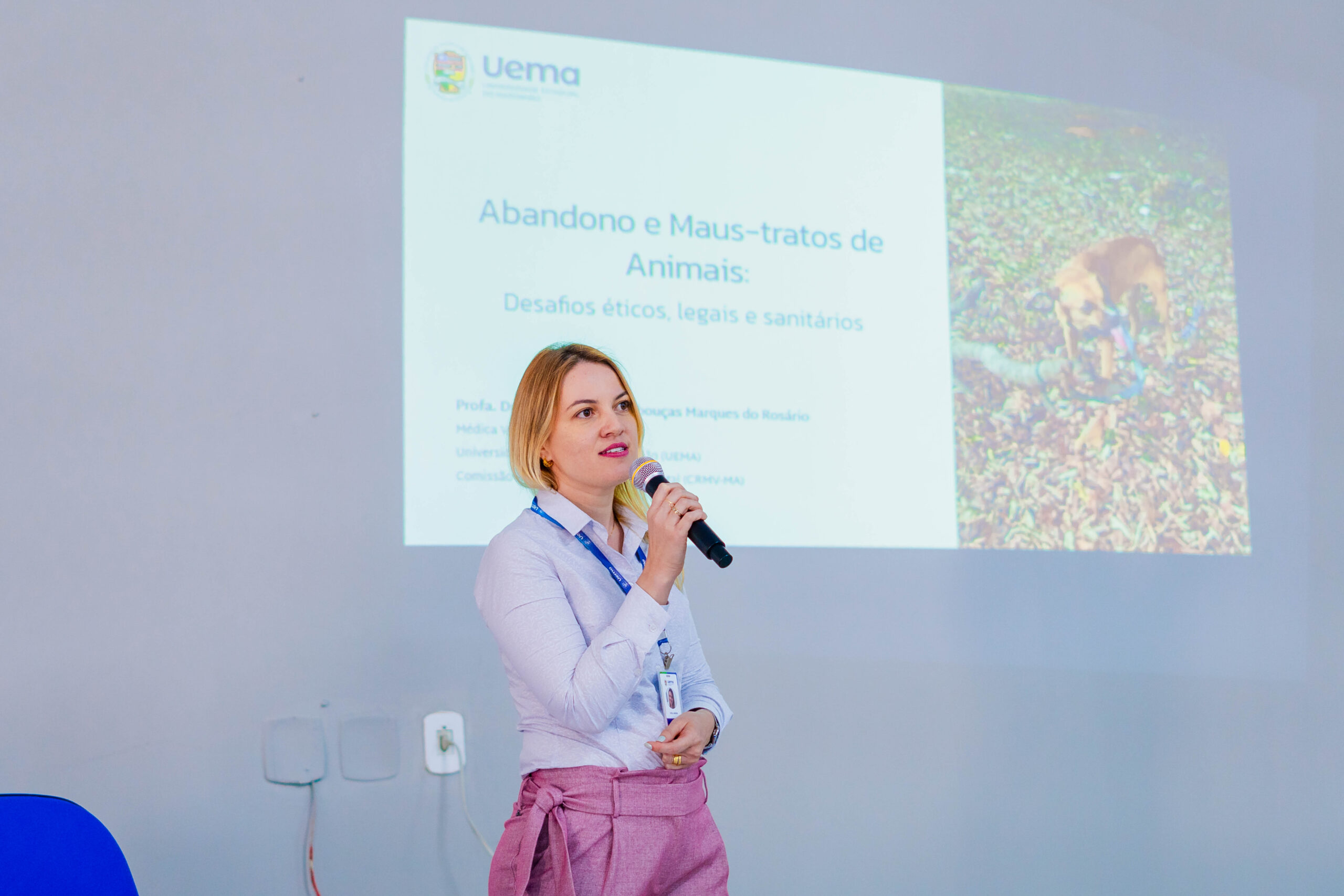A programação teve início com a professora Carla Janaina Rosário, docente da Uema e presidente da Comissão de Medicina Veterinária Legal do CRMV-MA, que ministrou a palestra “Abandono e maus-tratos de animais: implicações éticas, legais e sanitárias”. Em seguida, o médico-veterinário Diego Marques Costa Silva, doutorando em Ciência Animal pelo HVU-Uema, falou sobre “Leishmaniose canina: perspectivas éticas e legais”. A médica-veterinária Juliana Sá Vitor, mestranda em Ciência Animal e integrante do LAMIV-Uema, palestrou sobre a temática “Esporotricose felina: desafios sanitários e sociais”.