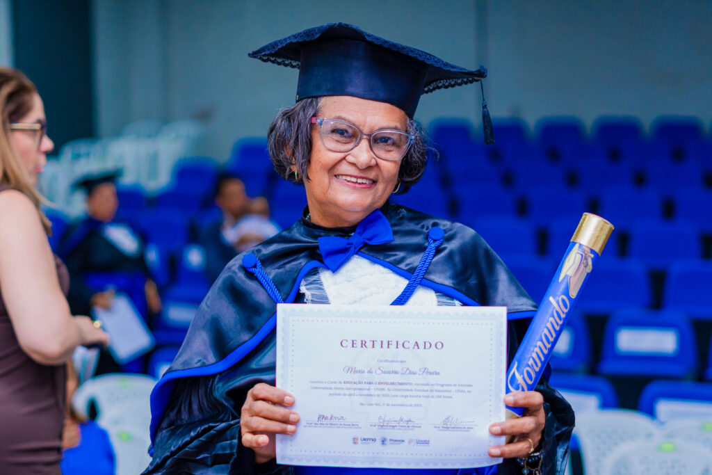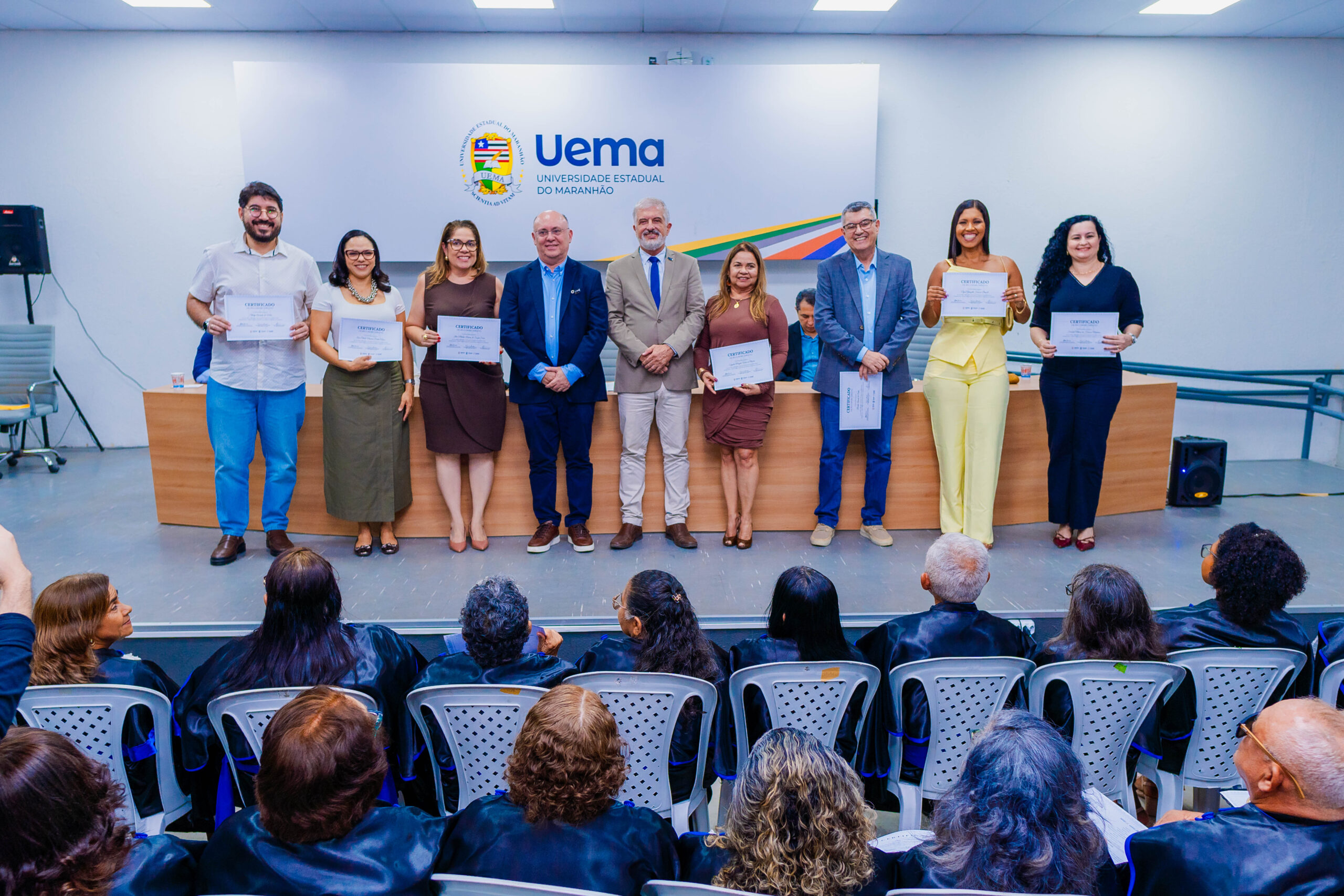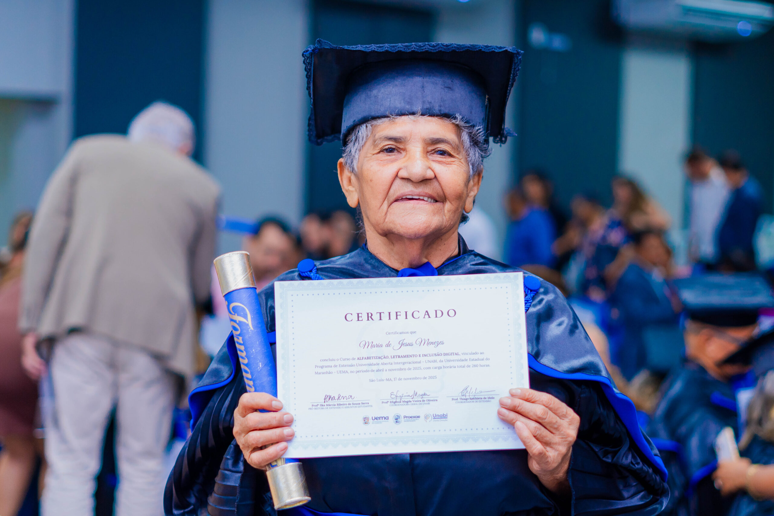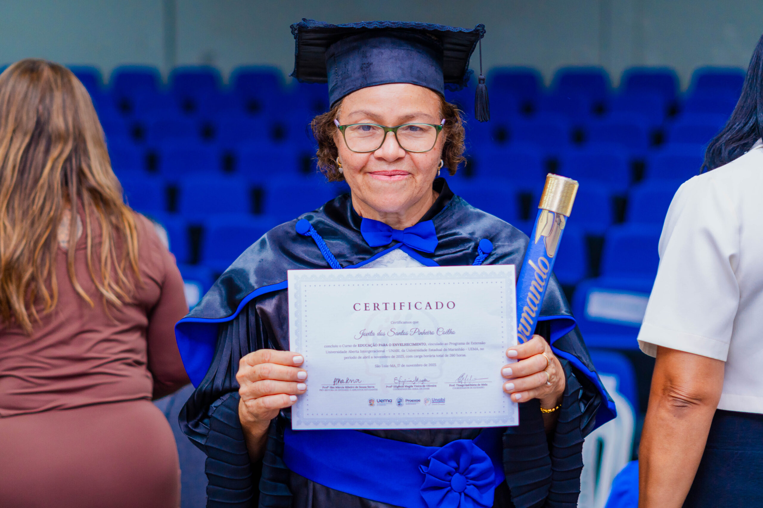 A Universidade Estadual do Maranhão (Uema), por meio do Programa Universidade Aberta Intergeracional (Unabi), realizou na tarde desta segunda-feira (17) a cerimônia de certificação dos estudantes dos cursos de Educação para o Envelhecimento e de Alfabetização, Letramento e Inclusão Digital. A solenidade ocorreu no auditório do Centro de Ciências Sociais Aplicadas (CCSA) e celebrou o encerramento de mais um ciclo formativo voltado à valorização da pessoa idosa.