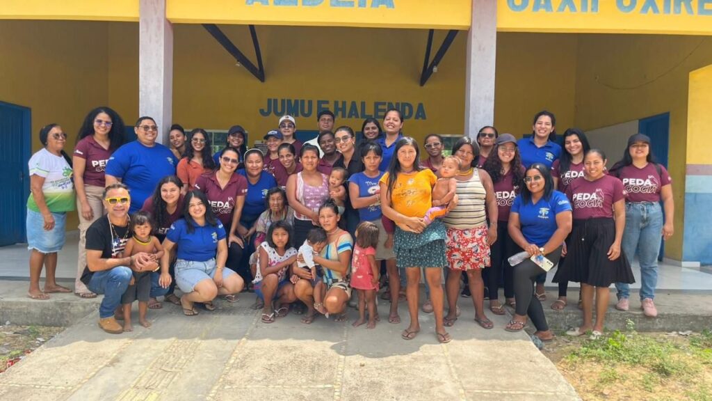 Os alunos do 4º período do curso de Pedagogia do Polo Nova Olinda do Maranhão, do Programa Ensinar, participaram, no dia 07 de dezembro, de uma aula de campo da disciplina Currículo, ministrada pelo Prof. Dr. Flávio Pereira. A atividade foi realizada na Escola Municipal Aldeia Jaxiipuxirenda e na Aldeia Japi, território do povo Kayapó.