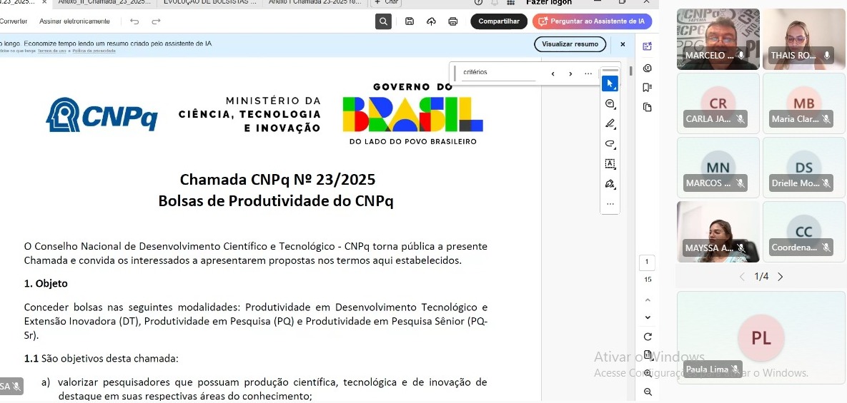 PPG realiza live sobre Chamada CNPq 2025 para ampliar número de bolsistas de produtividade