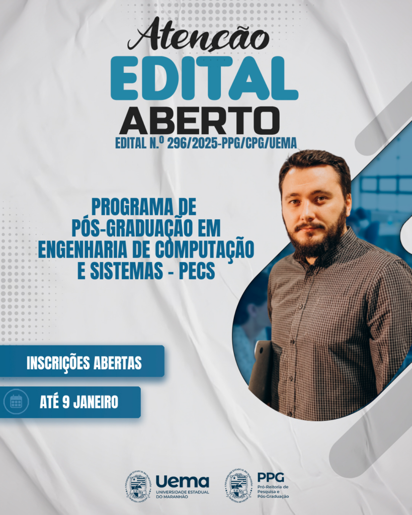 A Universidade Estadual do Maranhão está com inscrições abertas para o Curso de Mestrado Profissional do Programa de Pós-Graduação em Engenharia de Computação e Sistemas (PECS). O processo seletivo é regido pelo Edital nº 296/2025-PPG/CPG/UEMA e oferece 29 vagas para ingresso no período letivo de 2026.