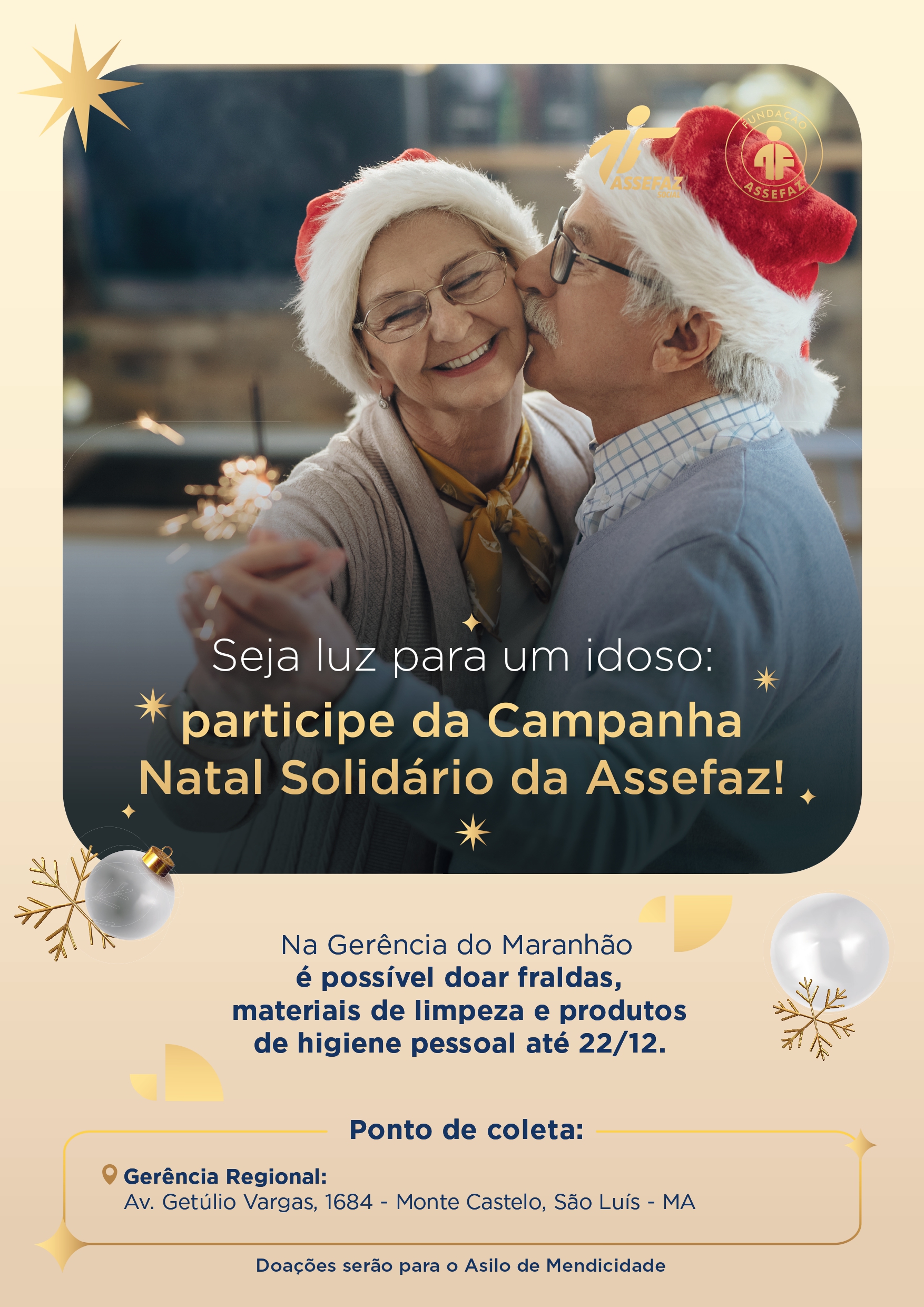 A Universidade Estadual do Maranhão (Uema), por meio da Pró-Reitoria de Gestão de Pessoas (Progep), manifesta seu apoio institucional à Campanha Seja Luz para um Idoso, iniciativa de Natal Solidário promovida pela Fundação Assistencial dos Servidores do Ministério da Fazenda (Assefaz).