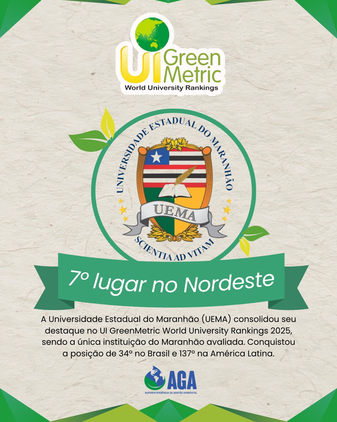 A Universidade Estadual do Maranhão (Uema) foi novamente avaliada pelo UI GreenMetric World University Rankings de 2025. Neste ano, o tema da edição foi: “Avançar nos Objetivos de Desenvolvimento Sustentável no Ensino Superior: Histórias das Nossas Instituições e Comunidades”.